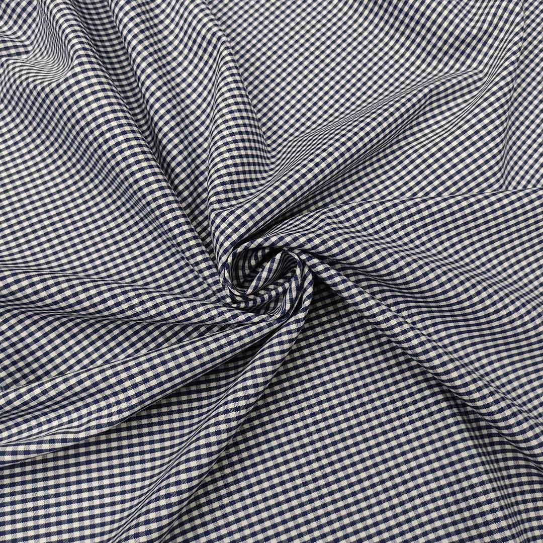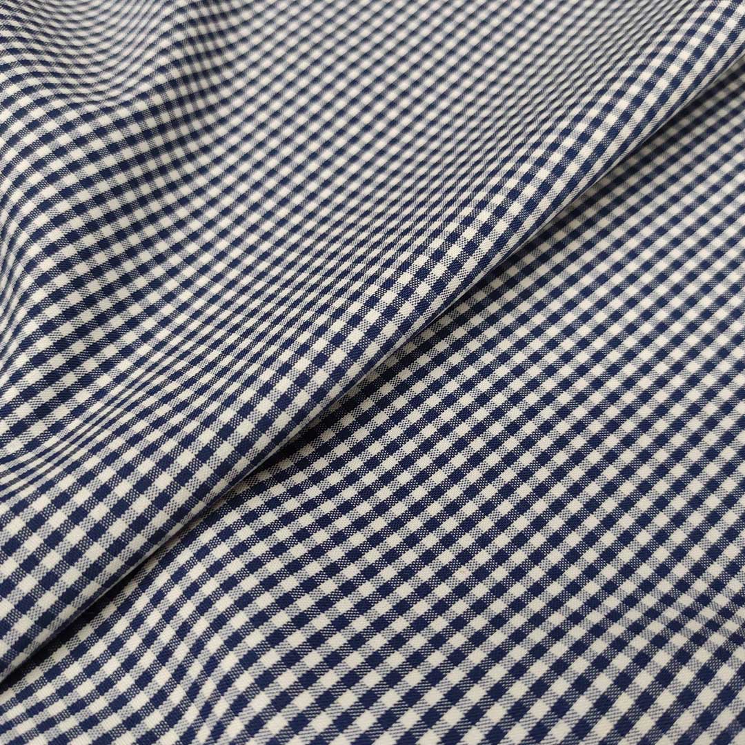 Tessuto Popeline di cotone elasticizzato a fantasia motivo quadretti bianco – blu