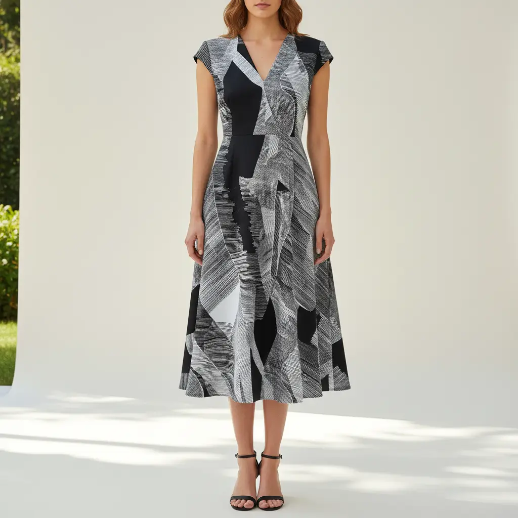 Tessuto Rasatello di Cotone a fantasia motivo astratto grigio – bianco – nero