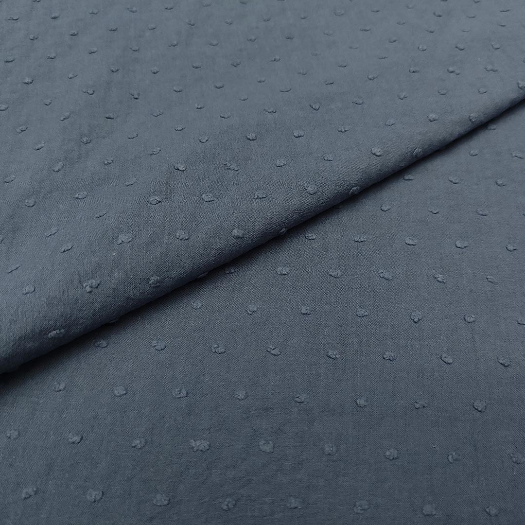 Tessuto Plumetis puro cotone tinta unita dalla mano morbida e fresca, con inserti ricamati a pois a rilievo tipici della lavorazione Plumetis, si presta alla creazione di capi adatti per la stagione estiva come: camicie, abiti e gonne.