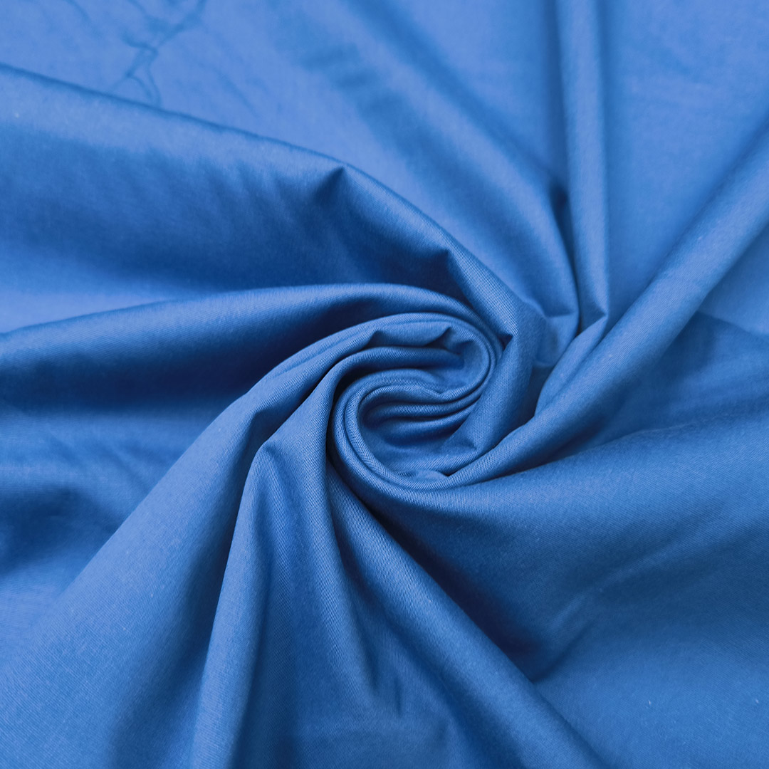 Tessuto Popeline di cotone in tinta unita dalla mano morbida, leggera e fluente, leggermente elasticizzato, si presta alla creazione di capi freschi e comodi da utilizzare nella stagione Primavera-Estate come: camicie, bluse, abiti e gonne.