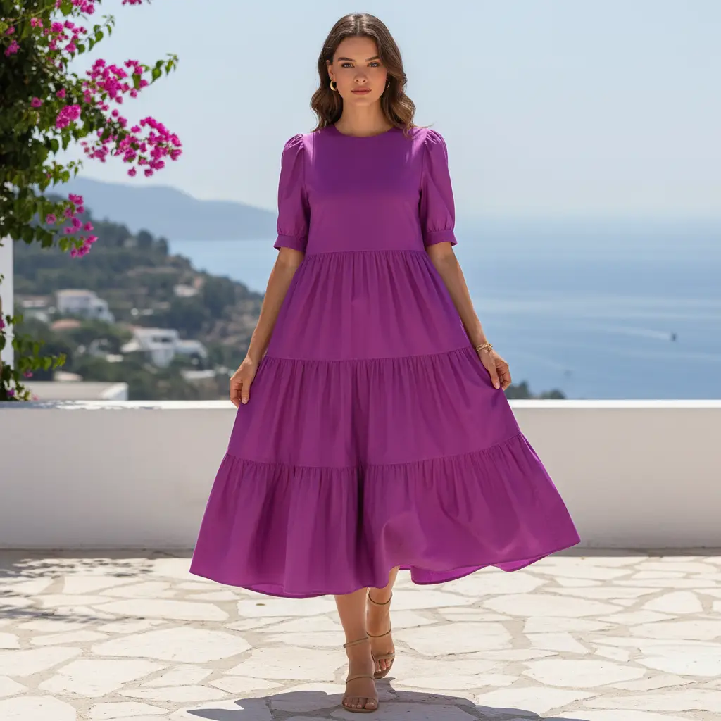 Tessuto Popeline di cotone in tinta unita dalla mano morbida, leggera e fluente, leggermente elasticizzato, si presta alla creazione di capi freschi e comodi da utilizzare nella stagione Primavera-Estate come: camicie, bluse, abiti e gonne.