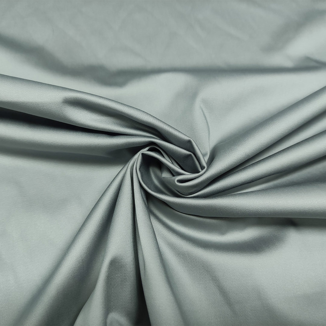 Tessuto Rasatello di cotone in tinta unita dalla mano morbida, leggermente elasticizzato si presta alla creazione di capi freschi e comodi da utilizzare nella stagione primavera – estate come: pantaloni, gonne, giacche ed abiti.