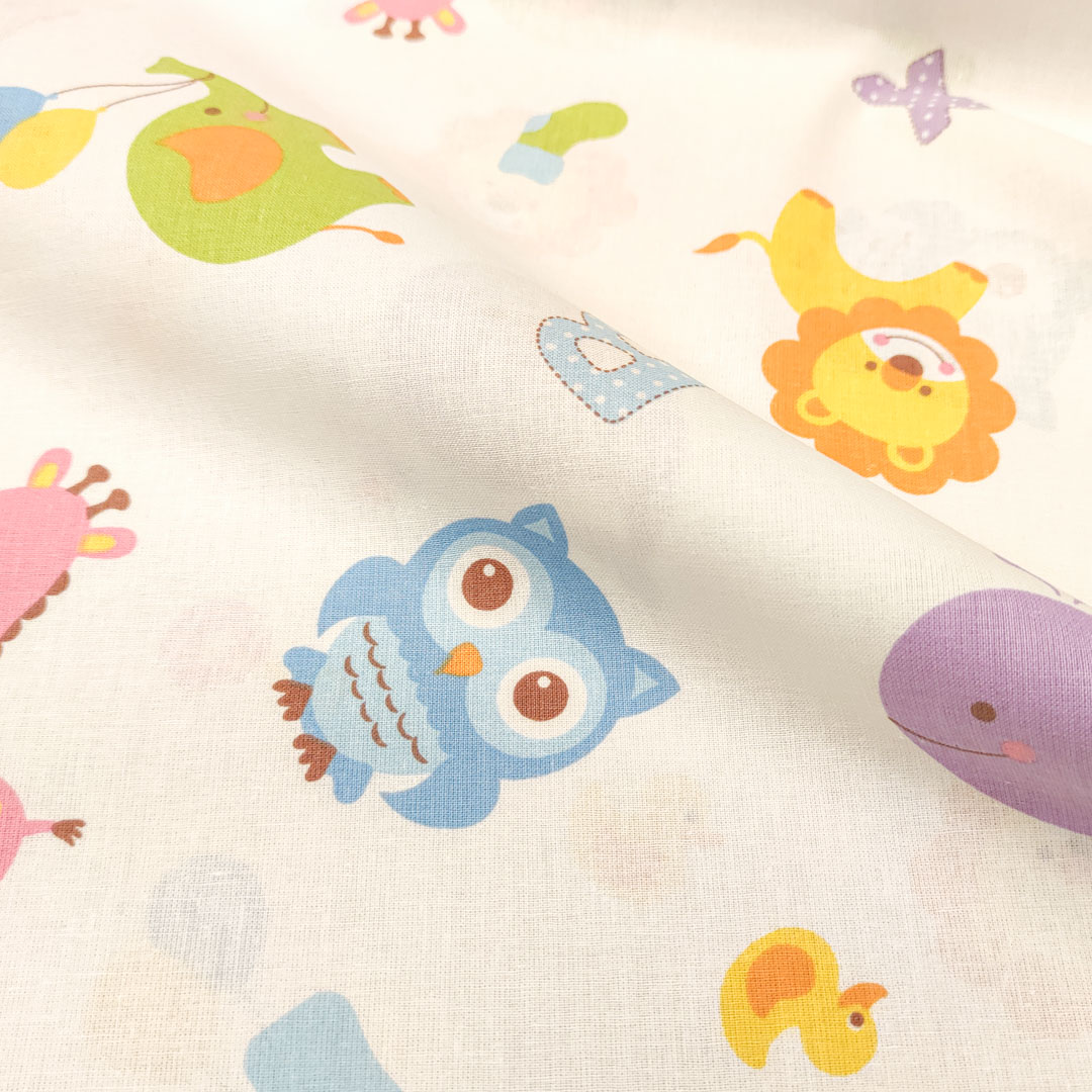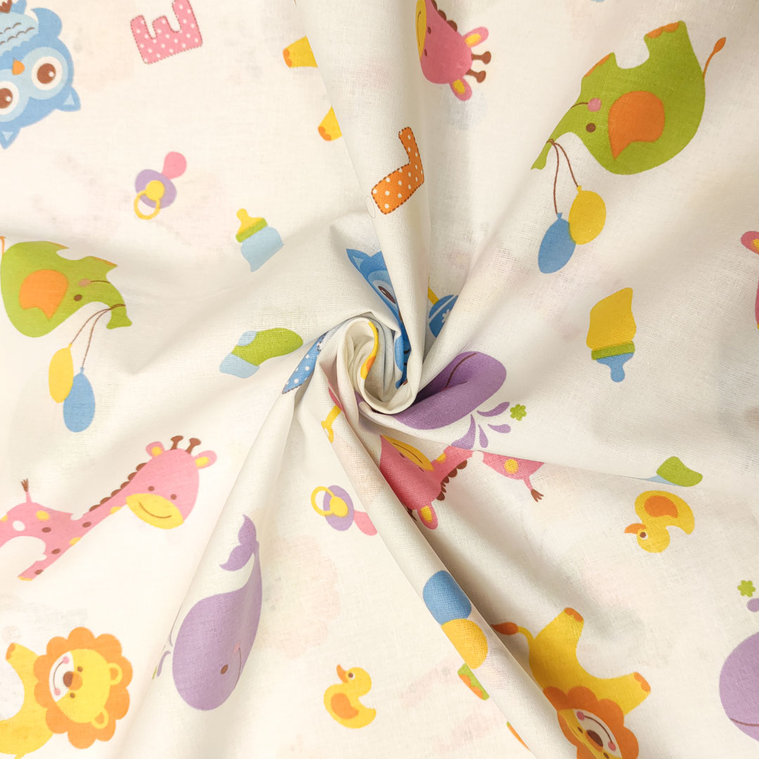 Tessuto Cotone percalle a fantasia, dalla mano morbida leggera e naturale, ideale per realizzare abbigliamento e accessori per bambini, copertine estive, lenzuolini per culle e carrozzine.