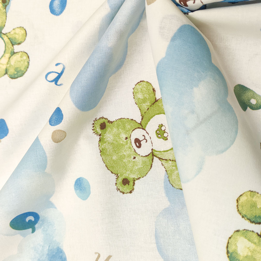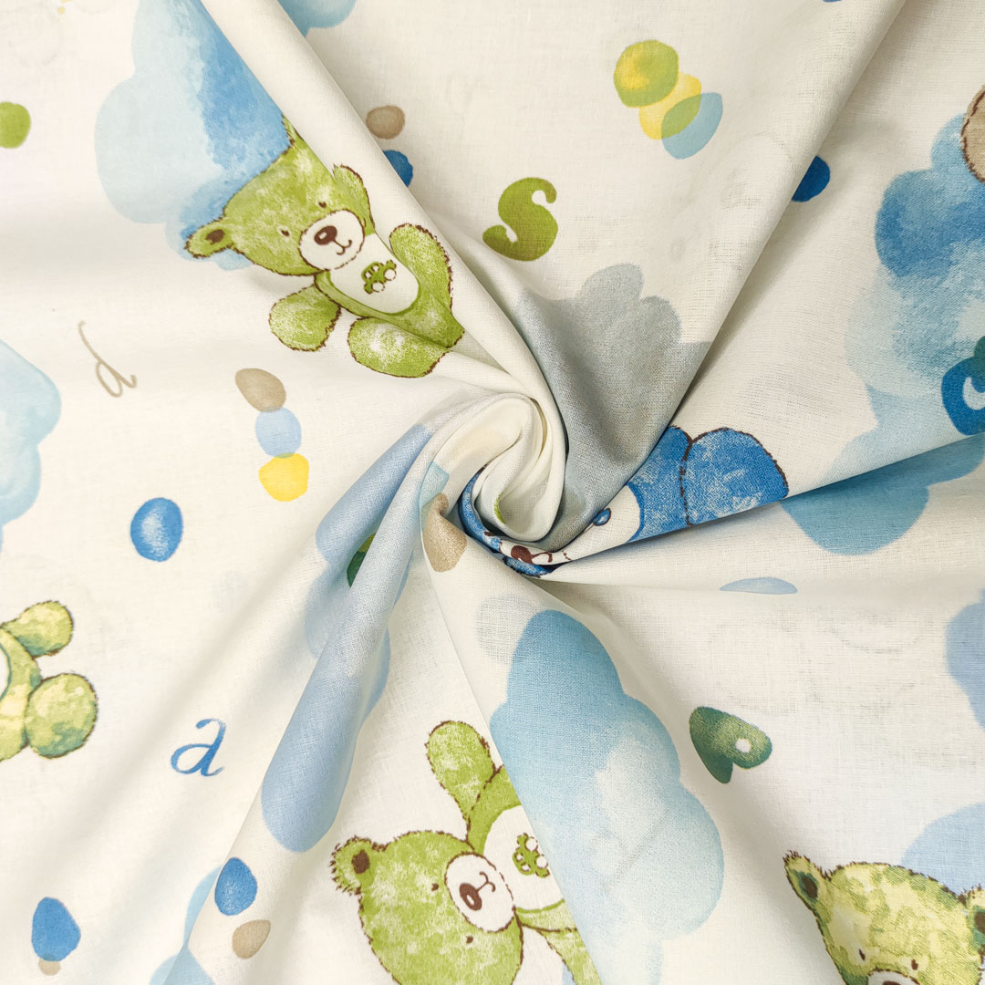 Tessuto Cotone percalle a fantasia, dalla mano morbida leggera e naturale, ideale per realizzare abbigliamento e accessori per bambini, copertine estive, lenzuolini per culle e carrozzine.
