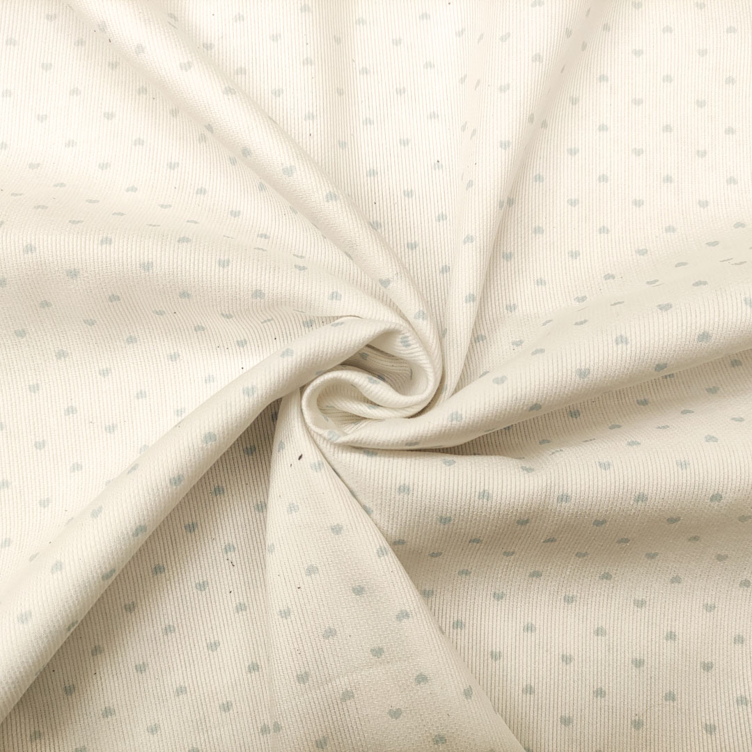 Tessuto Millerighe di Cotone a fantasia motivo cuori bianco – celeste