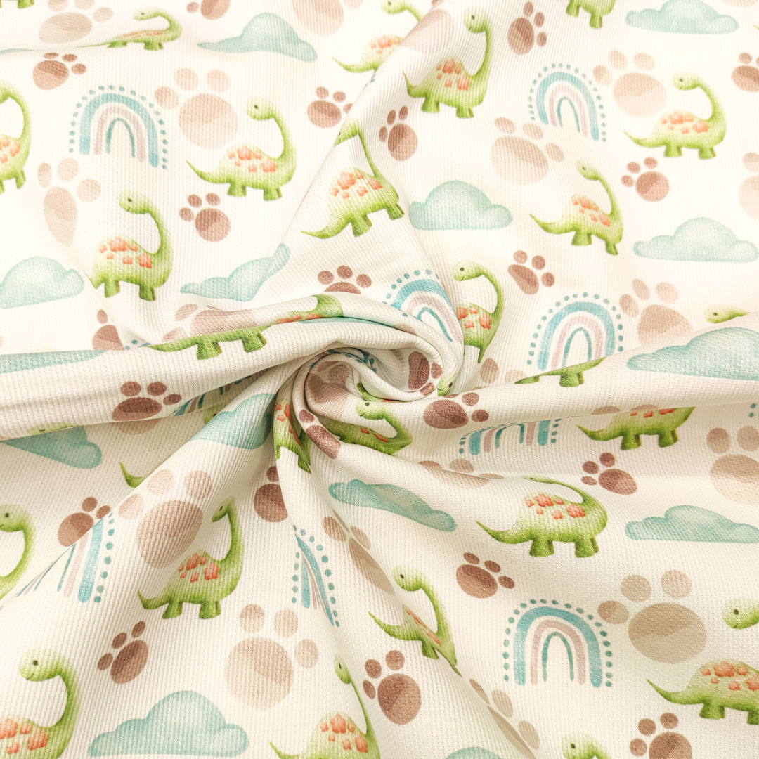Tessuto Millerighe di Cotone a fantasia motivo dinosauri verde – bianco – tiffany