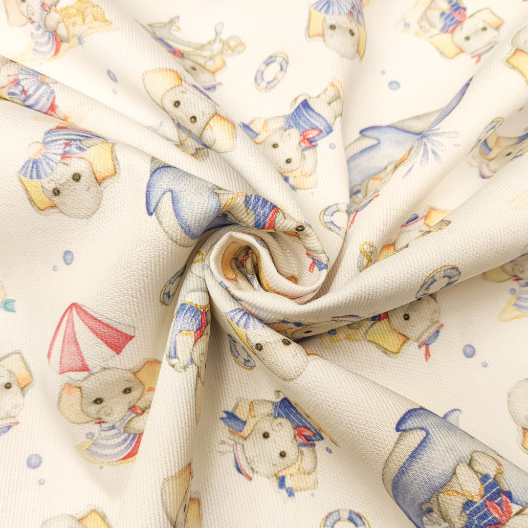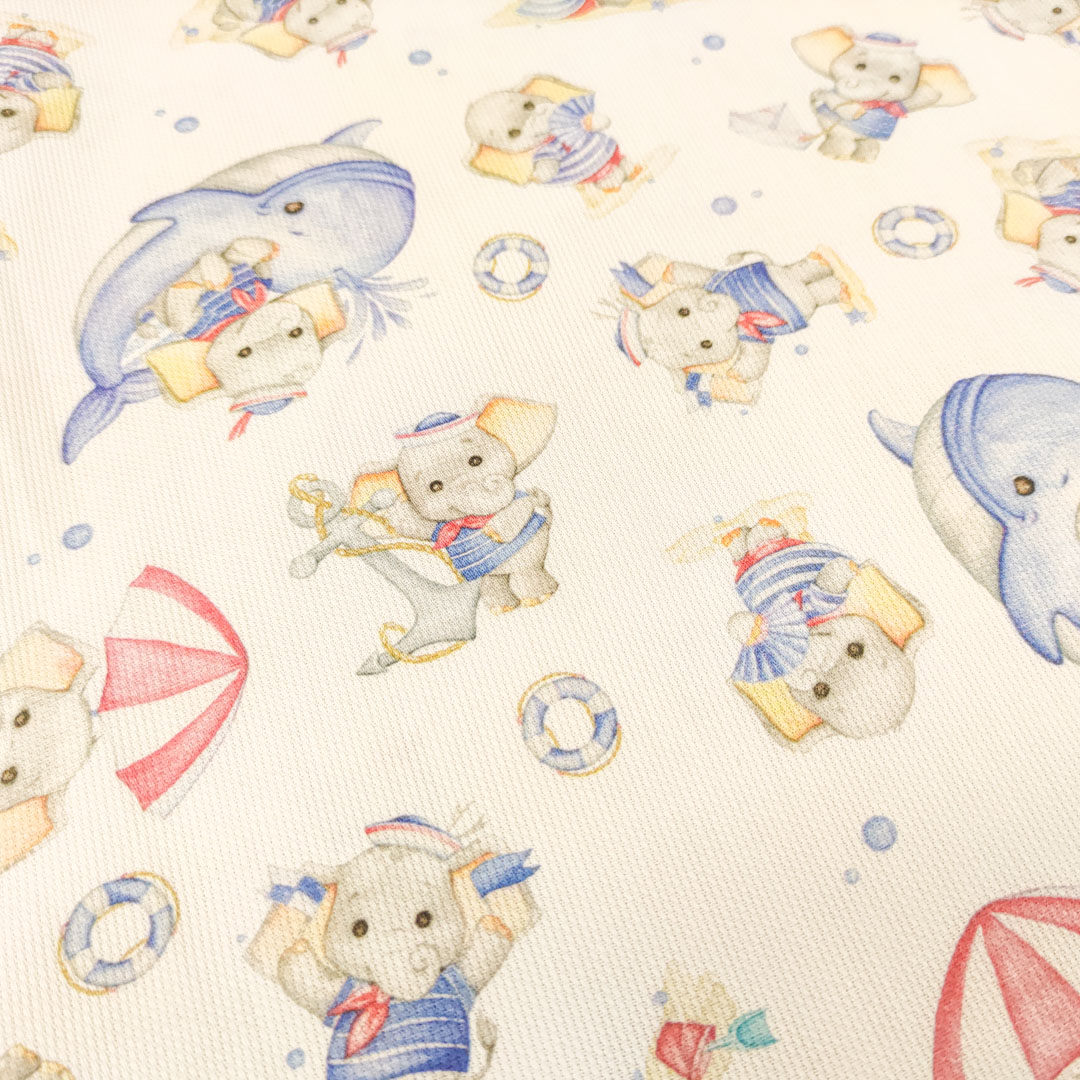 Tessuto Piquet Millerighe di Cotone a fantasia, dalla mano morbida leggera e naturale, ideale per realizzare abbigliamento e accessori per bambini, copertine estive, lenzuolini per culle e carrozzine.