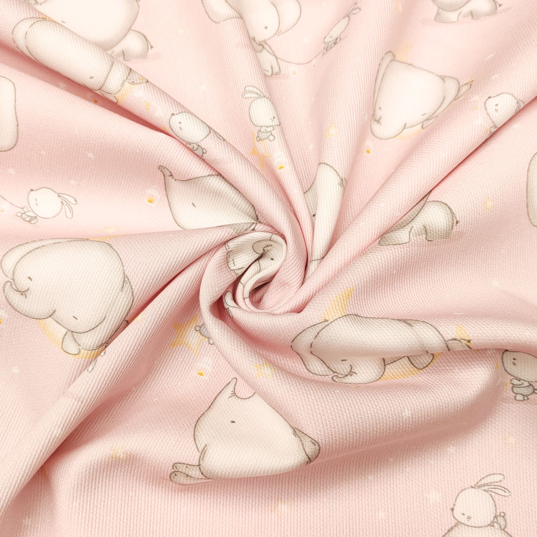Tessuto Millerighe di Cotone a fantasia motivo elefantino rosa – grigio