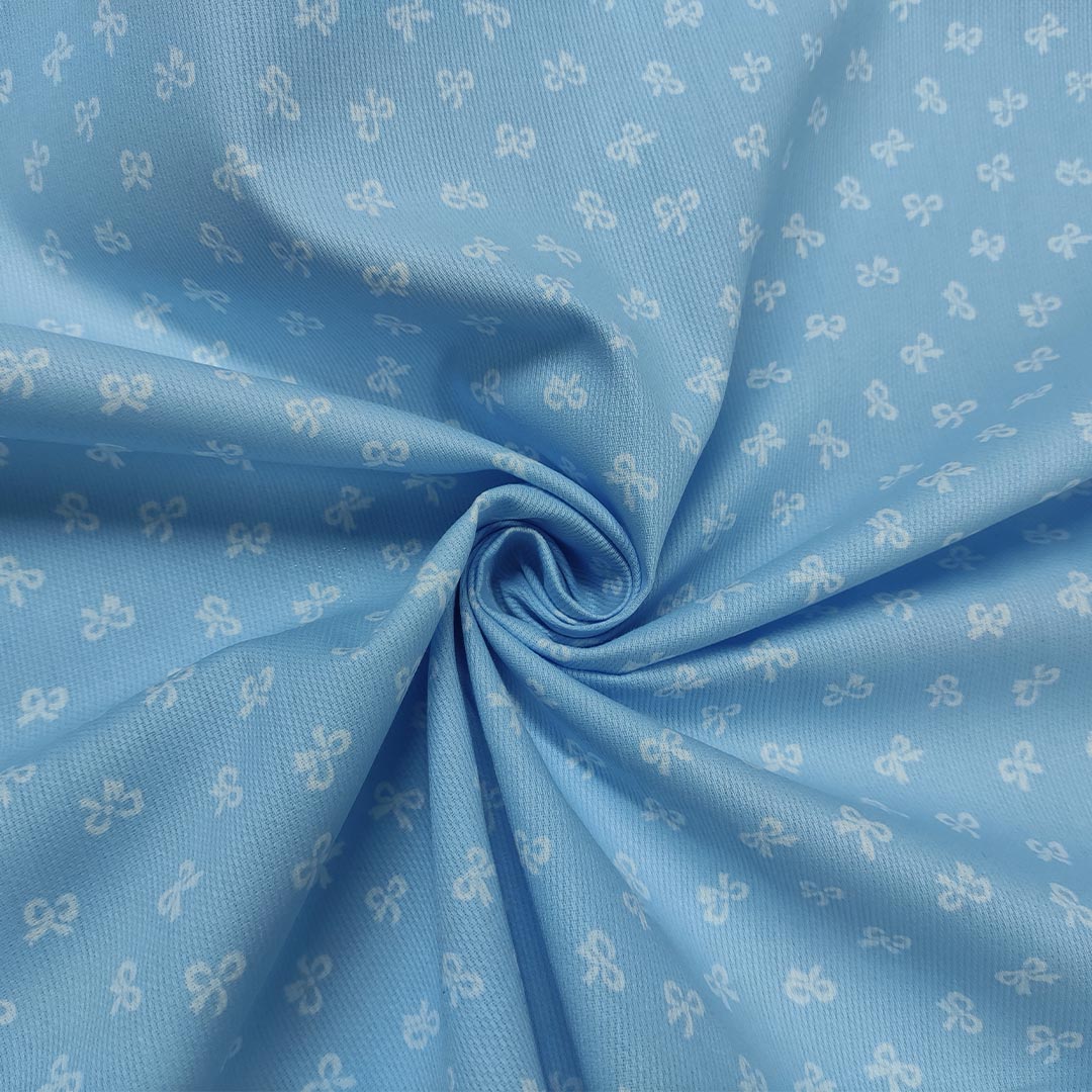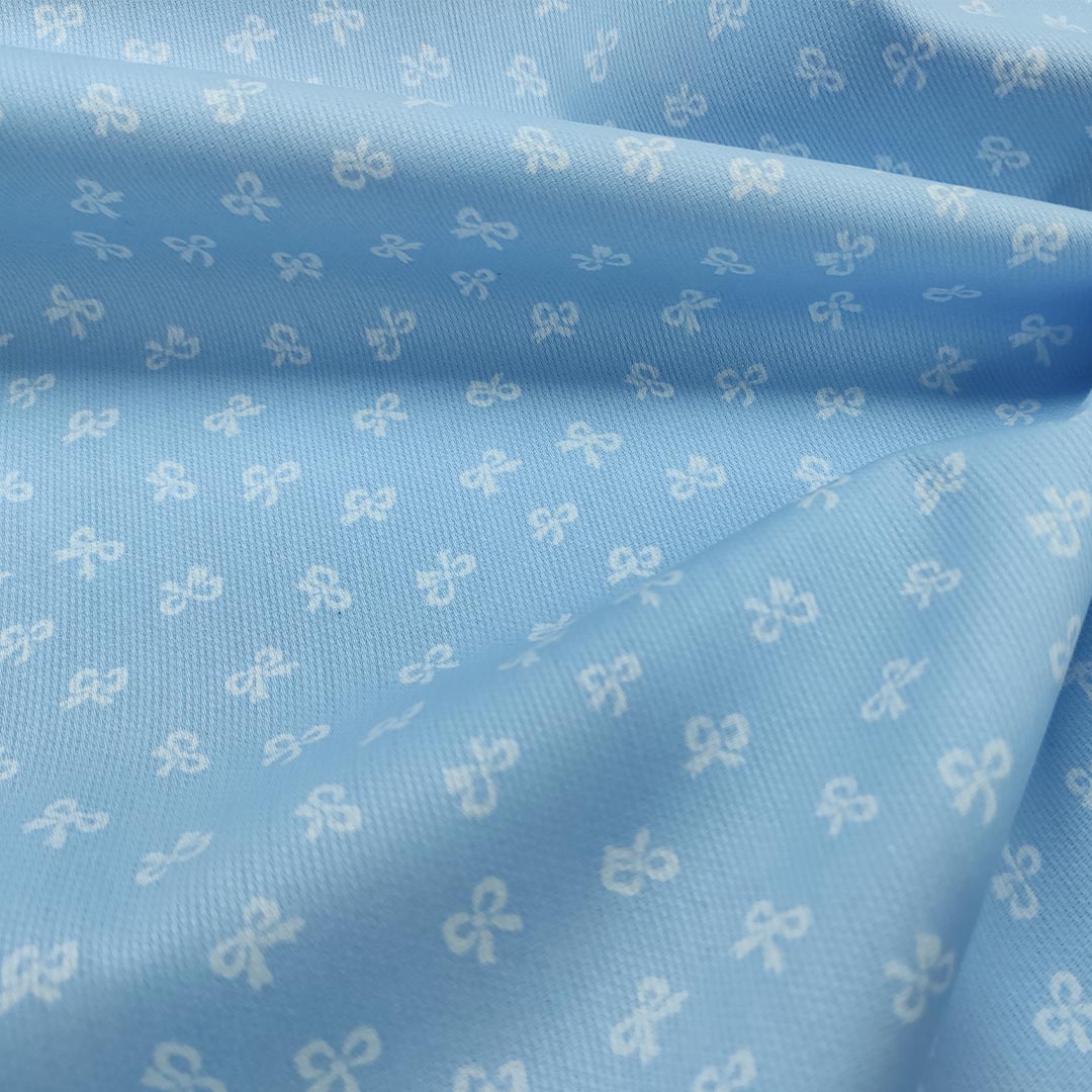 Tessuto Millerighe di Cotone a fantasia motivo fiocchi celeste – bianco