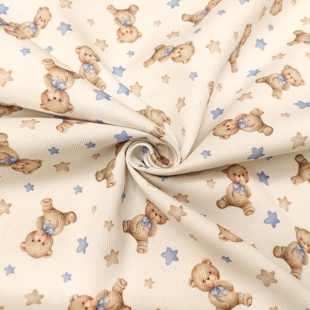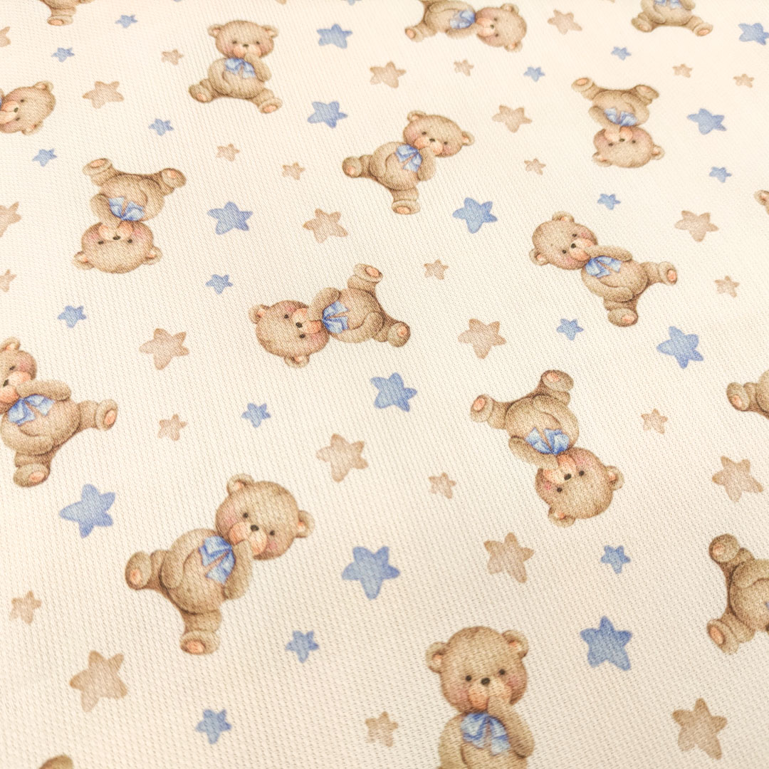 Tessuto Piquet Millerighe di Cotone a fantasia, dalla mano morbida leggera e naturale, ideale per realizzare abbigliamento e accessori per bambini, copertine estive, lenzuolini per culle e carrozzine.