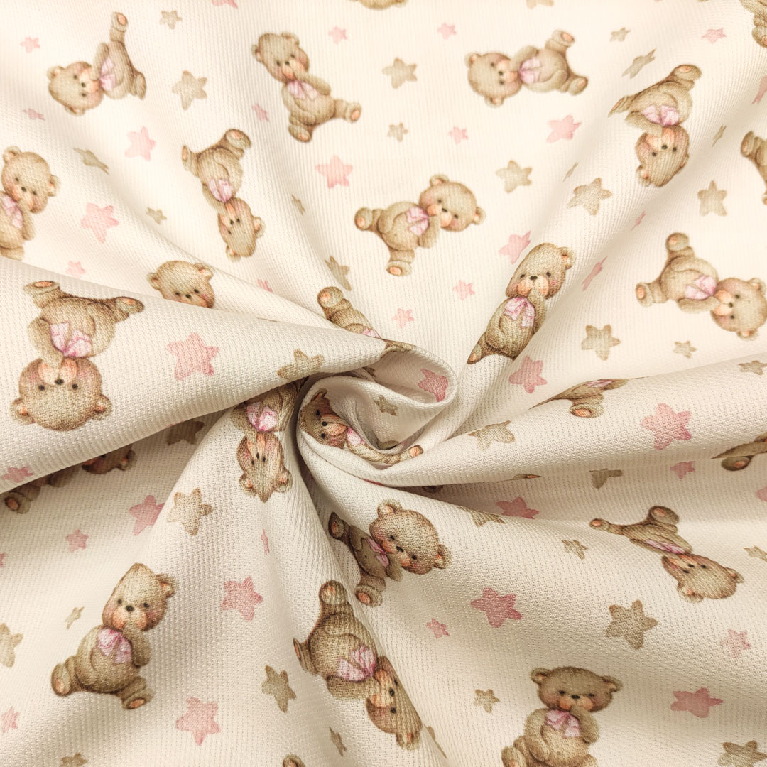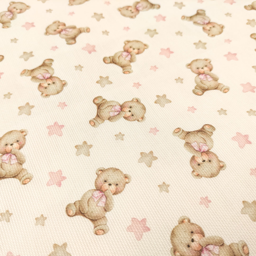 Tessuto Piquet Millerighe di Cotone a fantasia, dalla mano morbida leggera e naturale, ideale per realizzare abbigliamento e accessori per bambini, copertine estive, lenzuolini per culle e carrozzine.