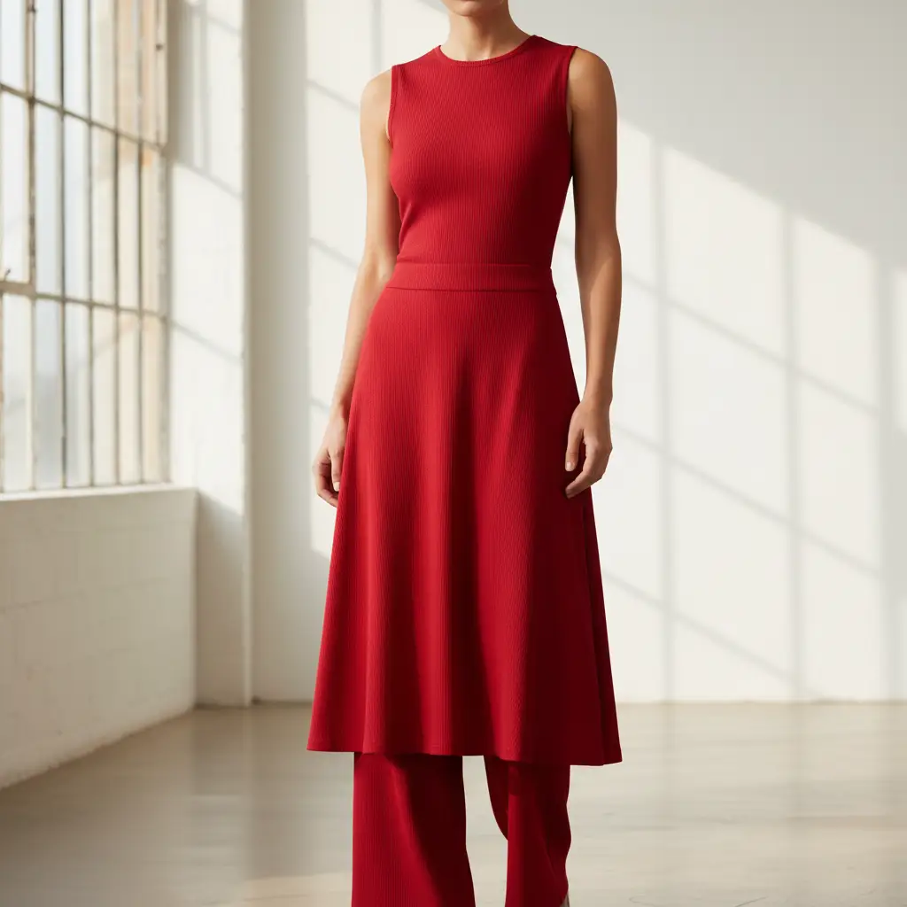 Tessuto Millerighe di cotone elasticizzato tinta unita rosso