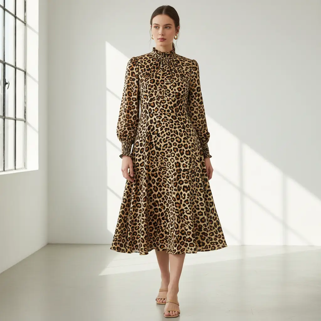 Tessuto Crepe a fantasia motivo animalier beige – marrone – nero