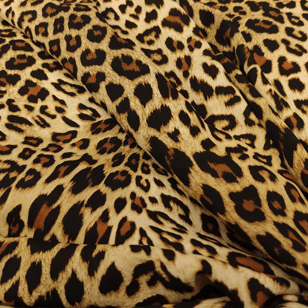 Tessuto Crepe a fantasia dalla mano rugosa, leggera e morbida. Ideale per realizzare capi freschi e comodi come: abiti, camicie gonne e bluse.