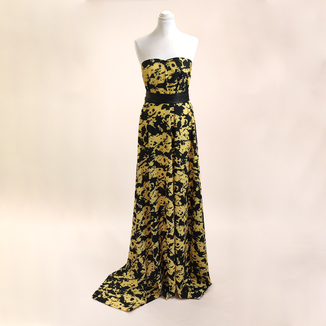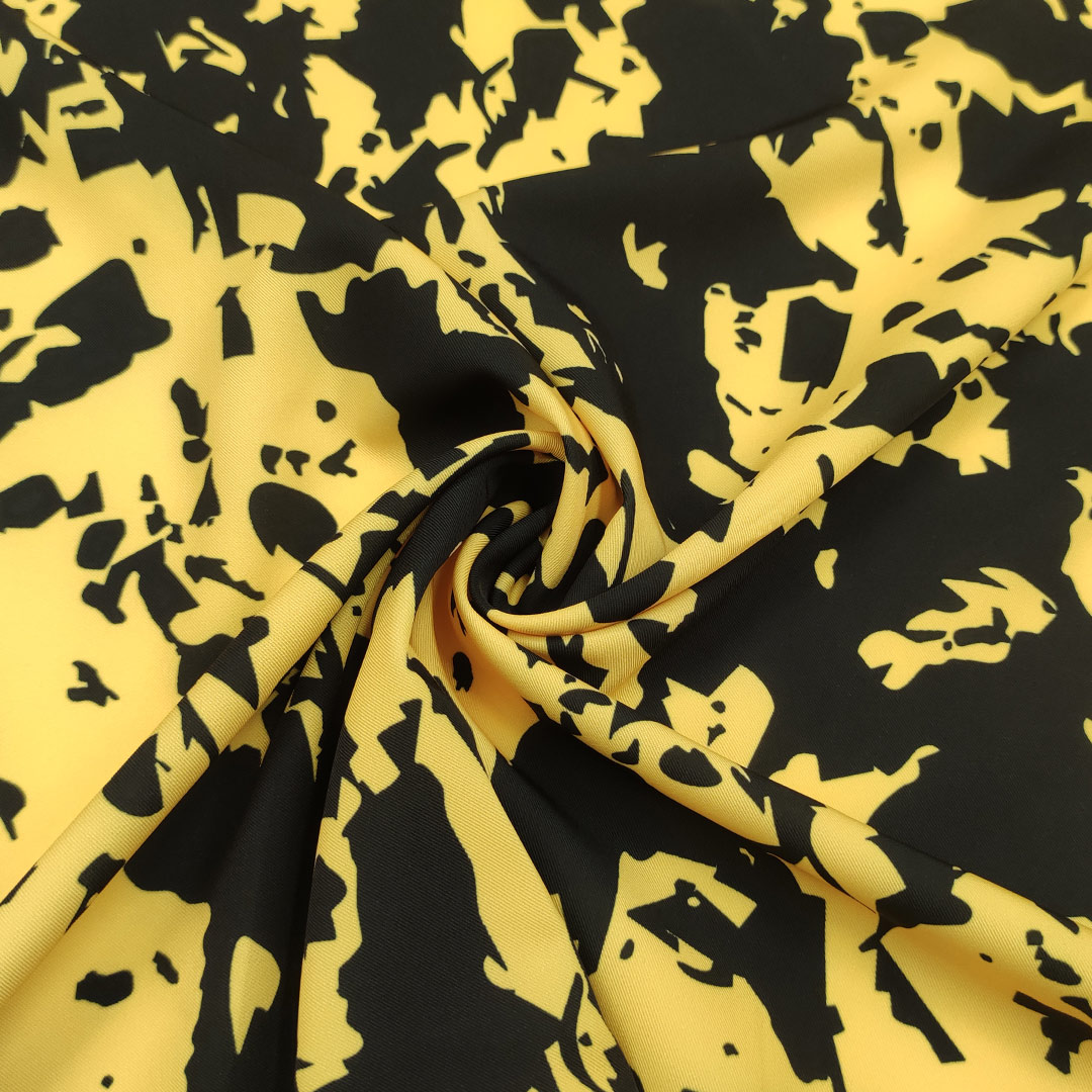 Tessuto Crepe a fantasia motivo astratto nero – giallo