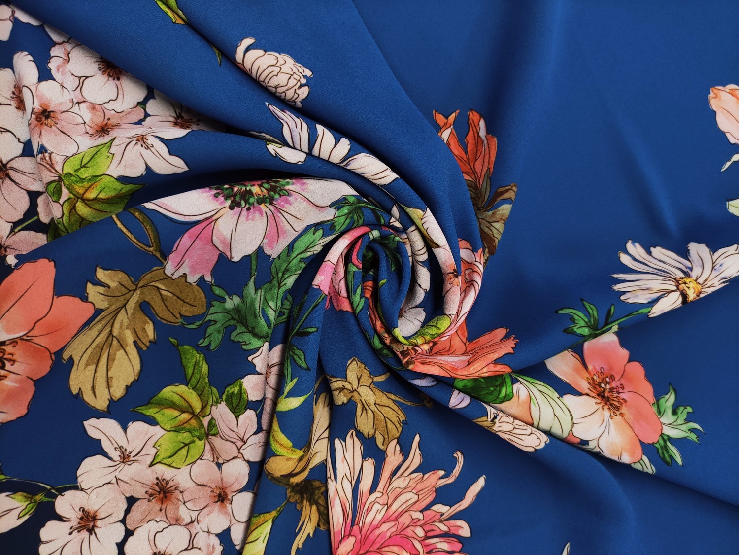 Tessuto Crepe a fantasia motivo blu – rosa