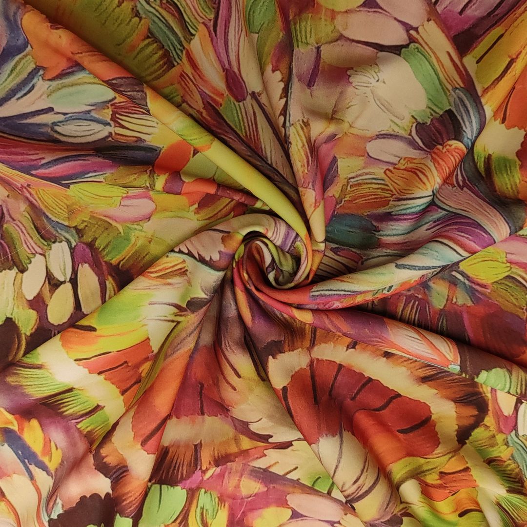 Tessuto Crepe a fantasia motivo floreale arancione – verde – giallo