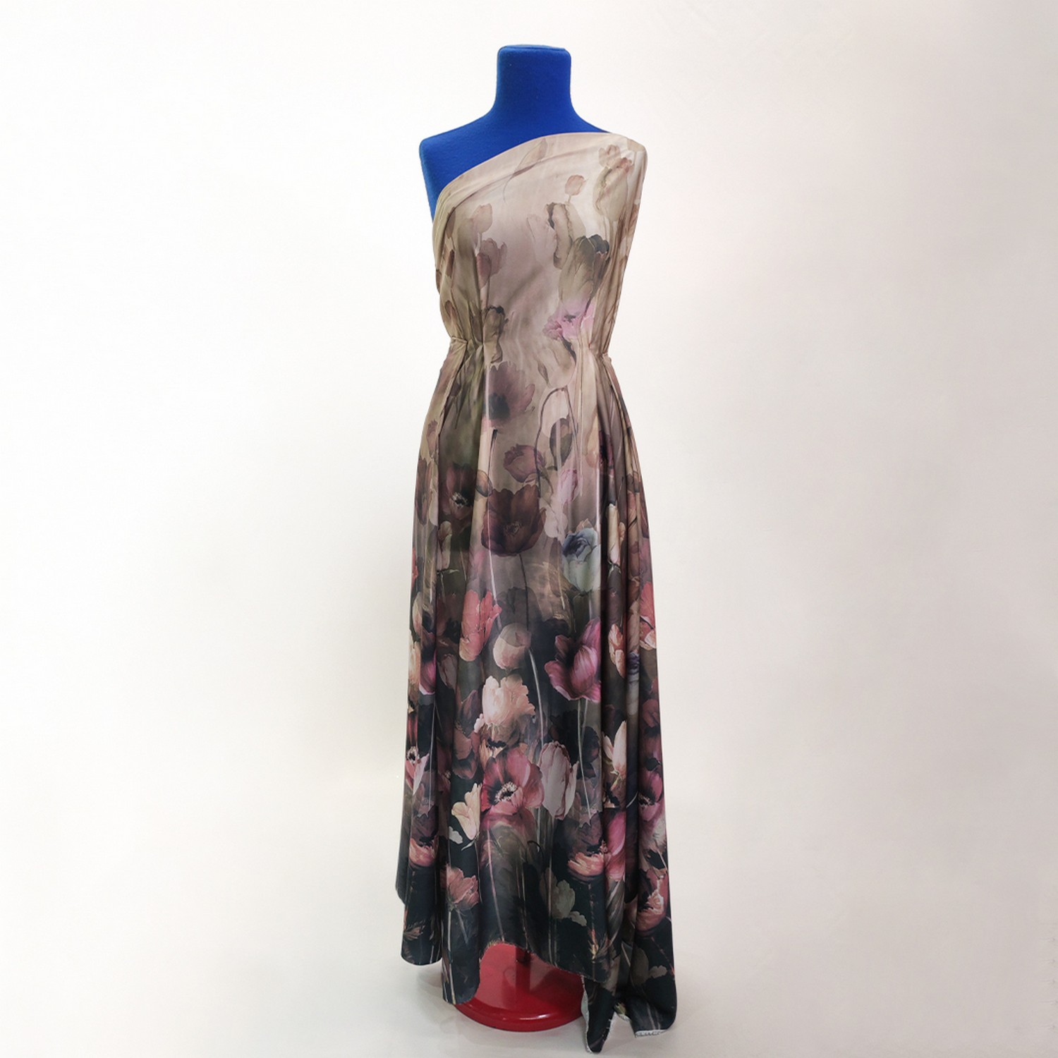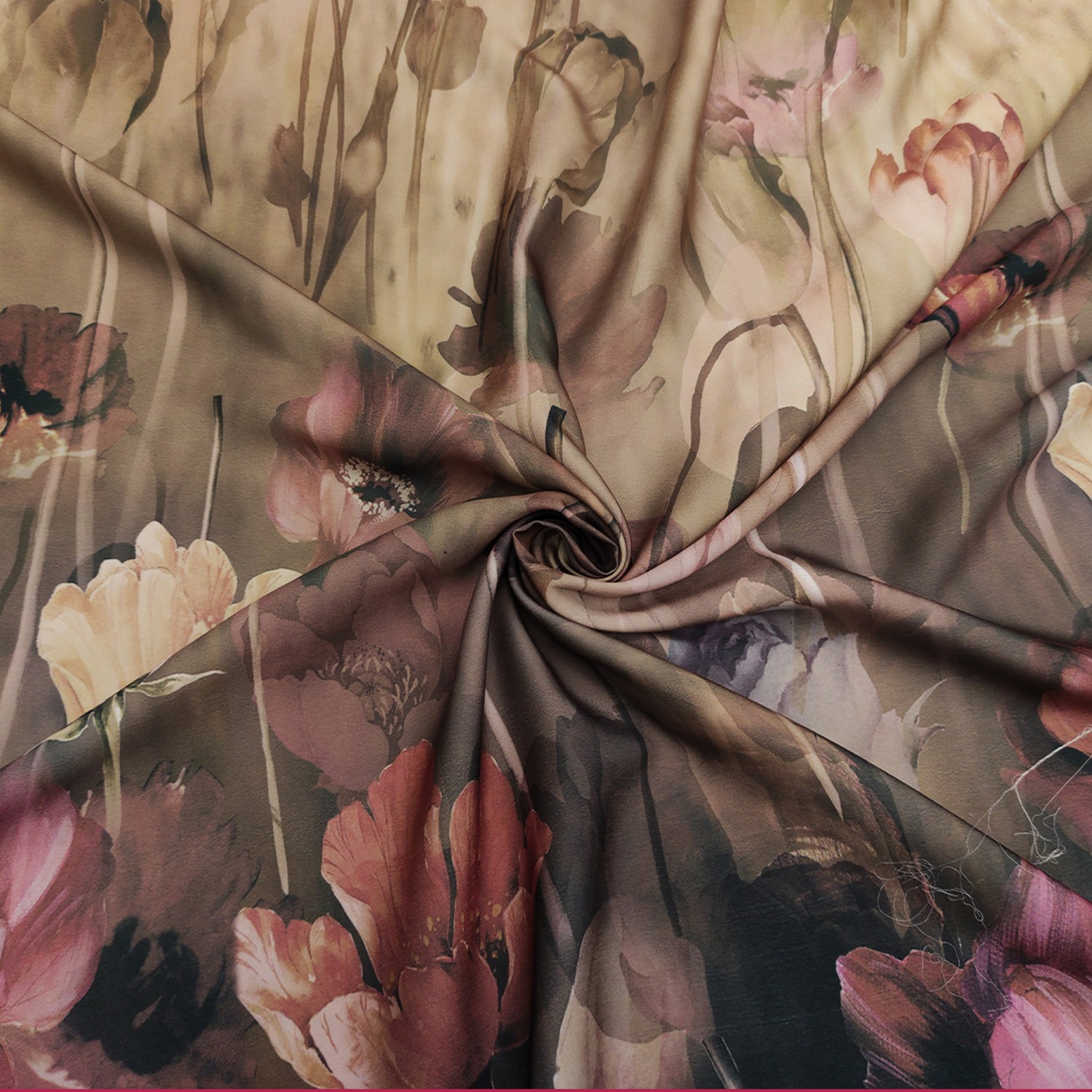Tessuto Crepe a fantasia motivo floreale beige – rosa