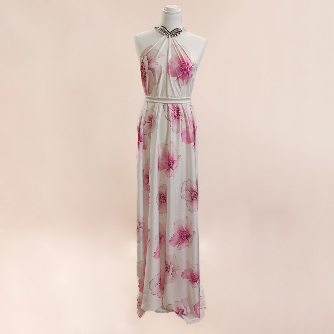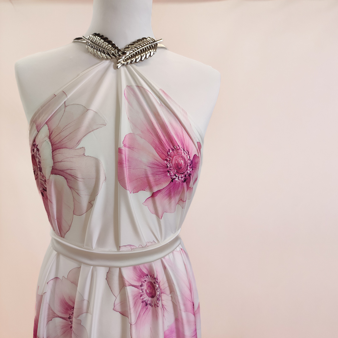 Tessuto Crepe a fantasia motivo floreale bianco – rosa