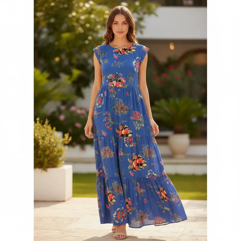 Tessuto Crepe a fantasia motivo floreale blu elettrico – fucsia