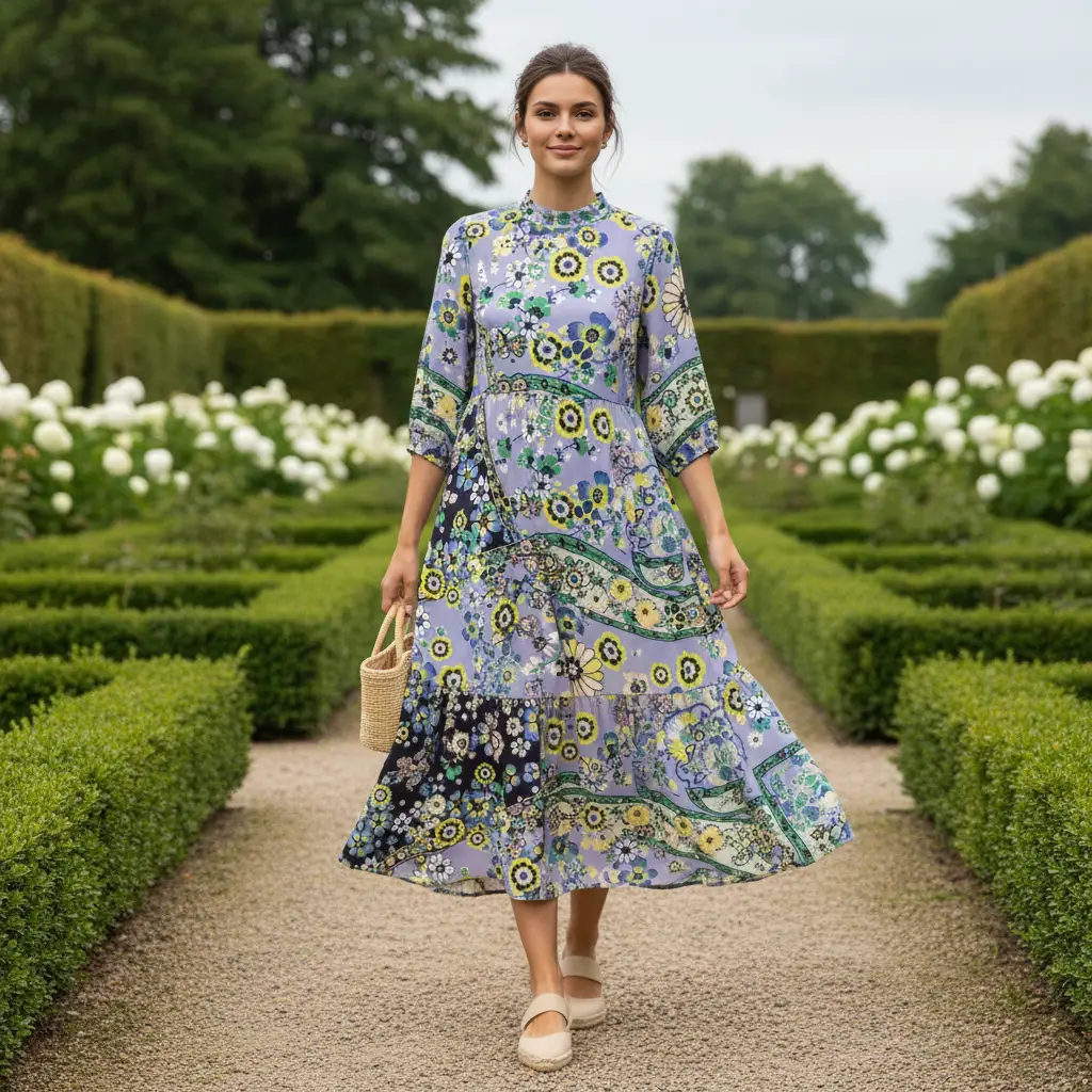 Tessuto Crepe a fantasia dalla mano rugosa, leggera e morbida. Ideale per realizzare capi freschi e comodi come: abiti, camicie gonne e bluse.
