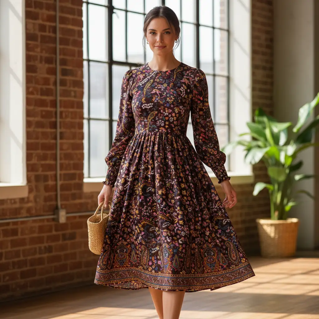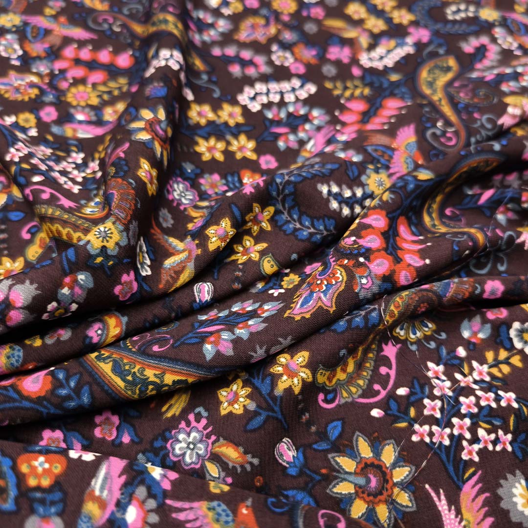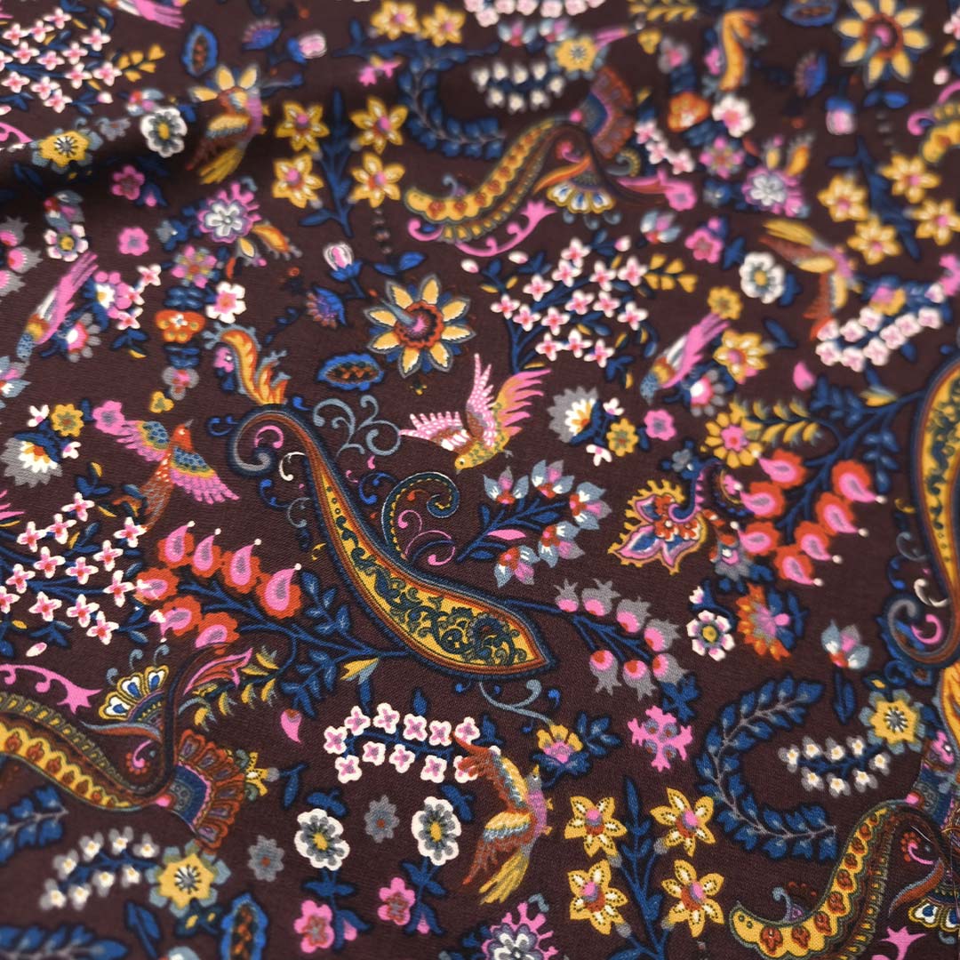 Tessuto Crepe a fantasia motivo floreale cashmere vinaccio – ocra – fucsia