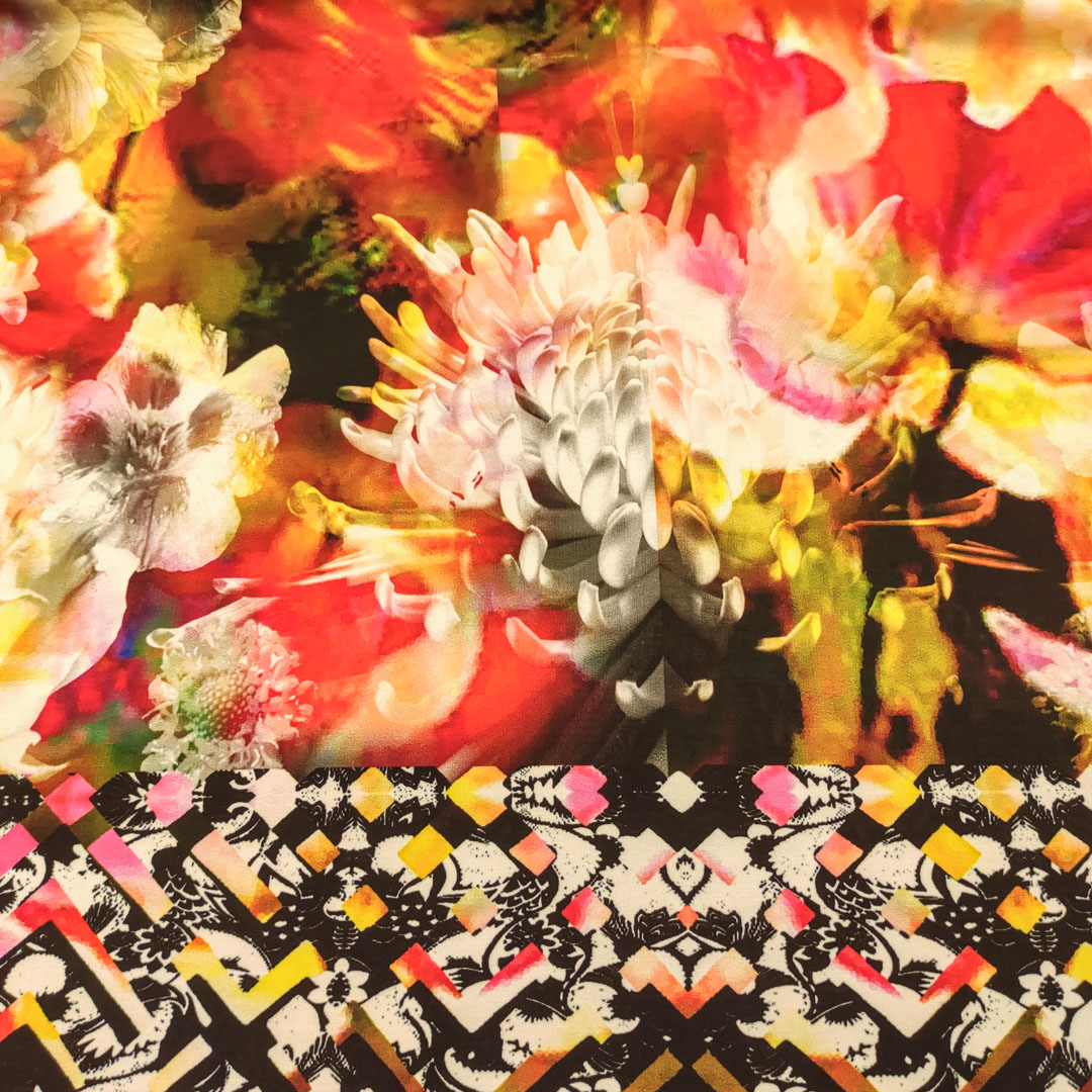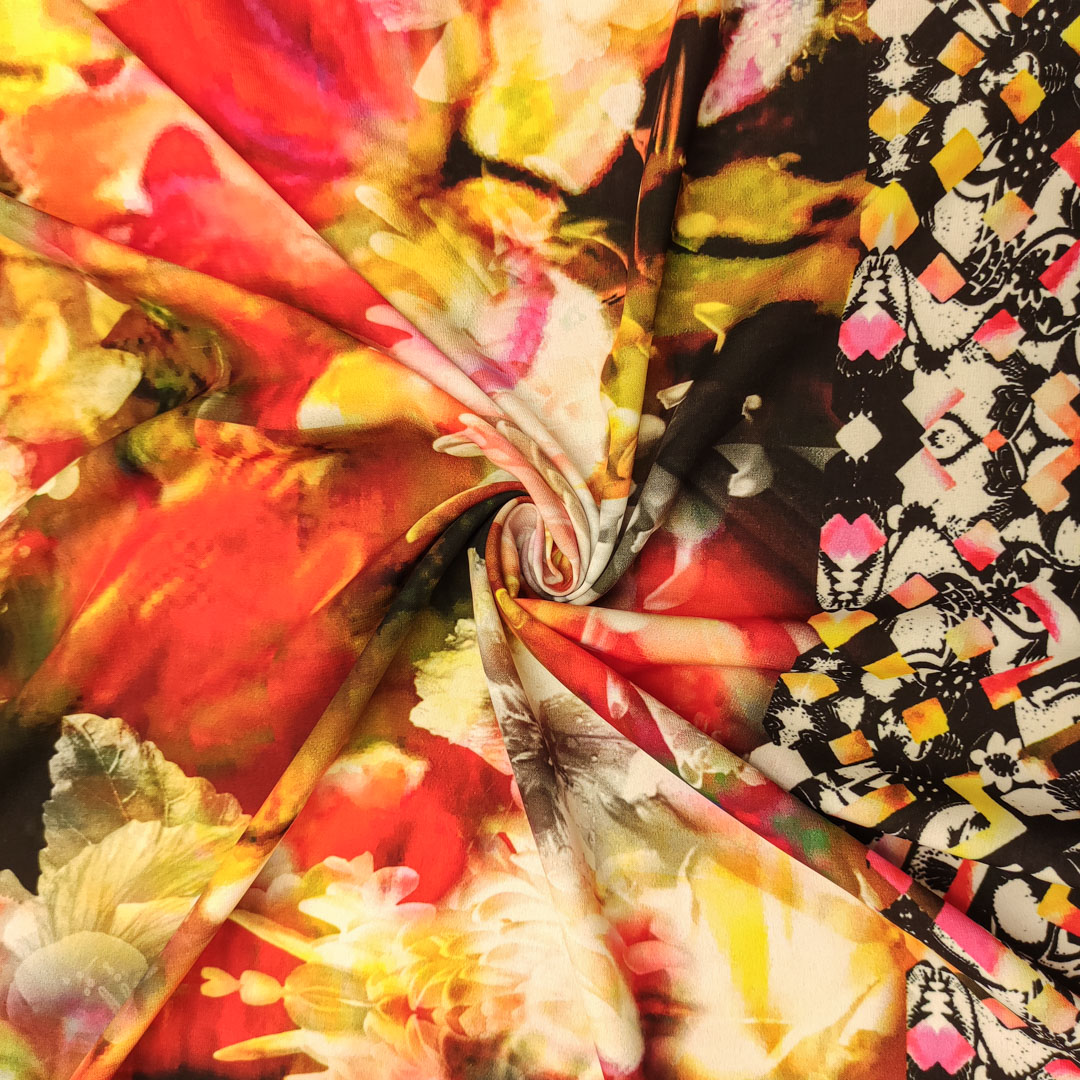 Tessuto Crepe a fantasia motivo floreale nero – arancio – grigio
