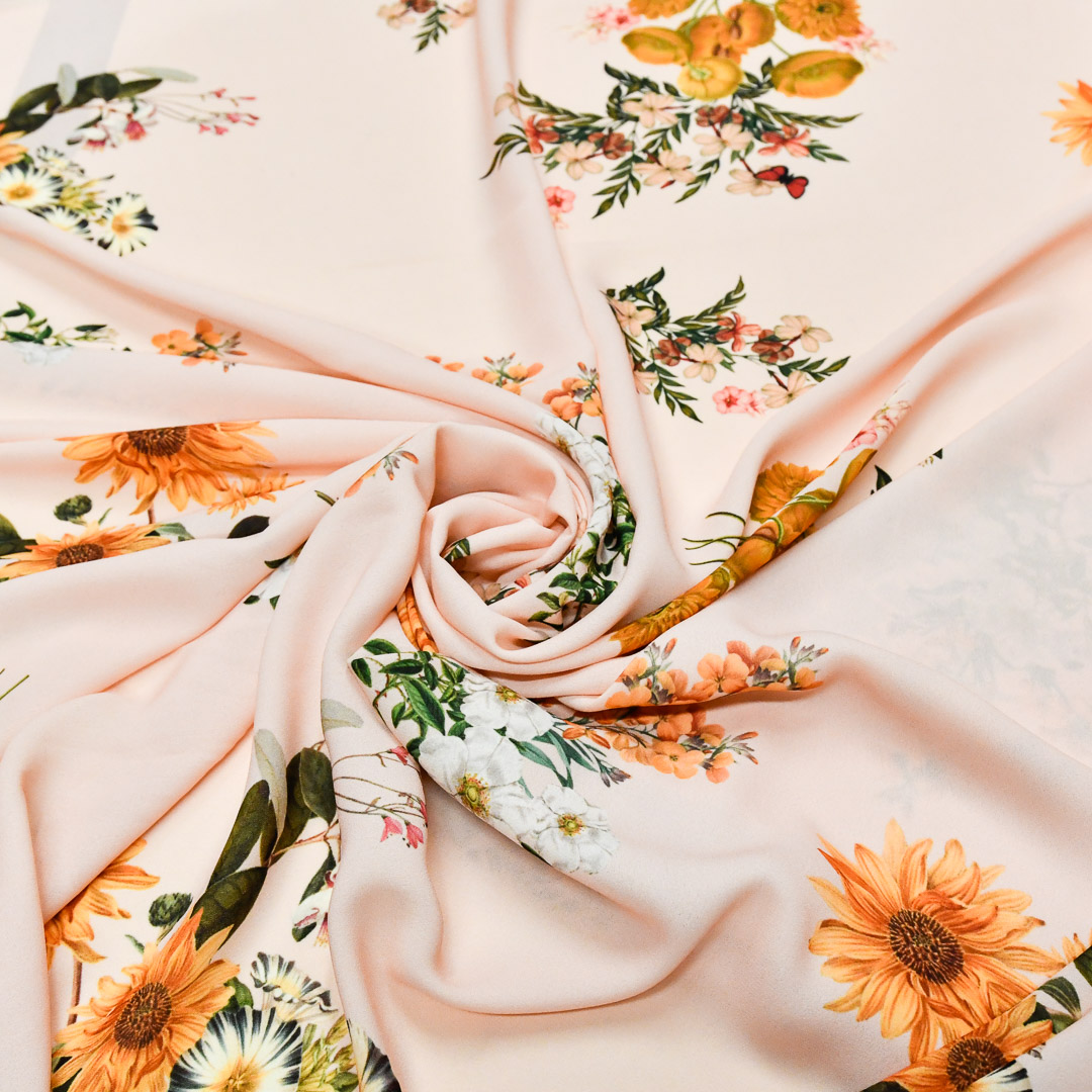 Tessuto Crepe a fantasia dalla mano rugosa, leggera e morbida. Ideale per realizzare capi freschi e comodi come: abiti, camicie gonne e bluse.
