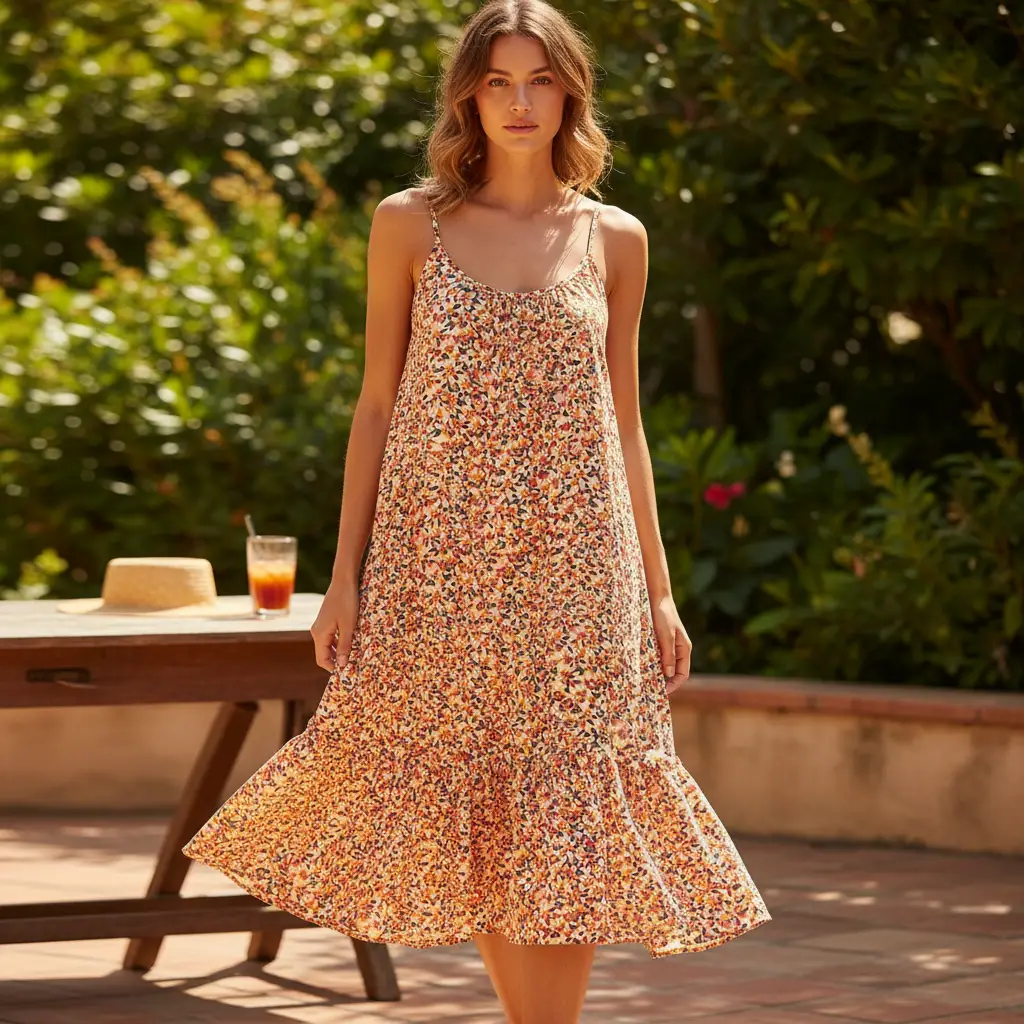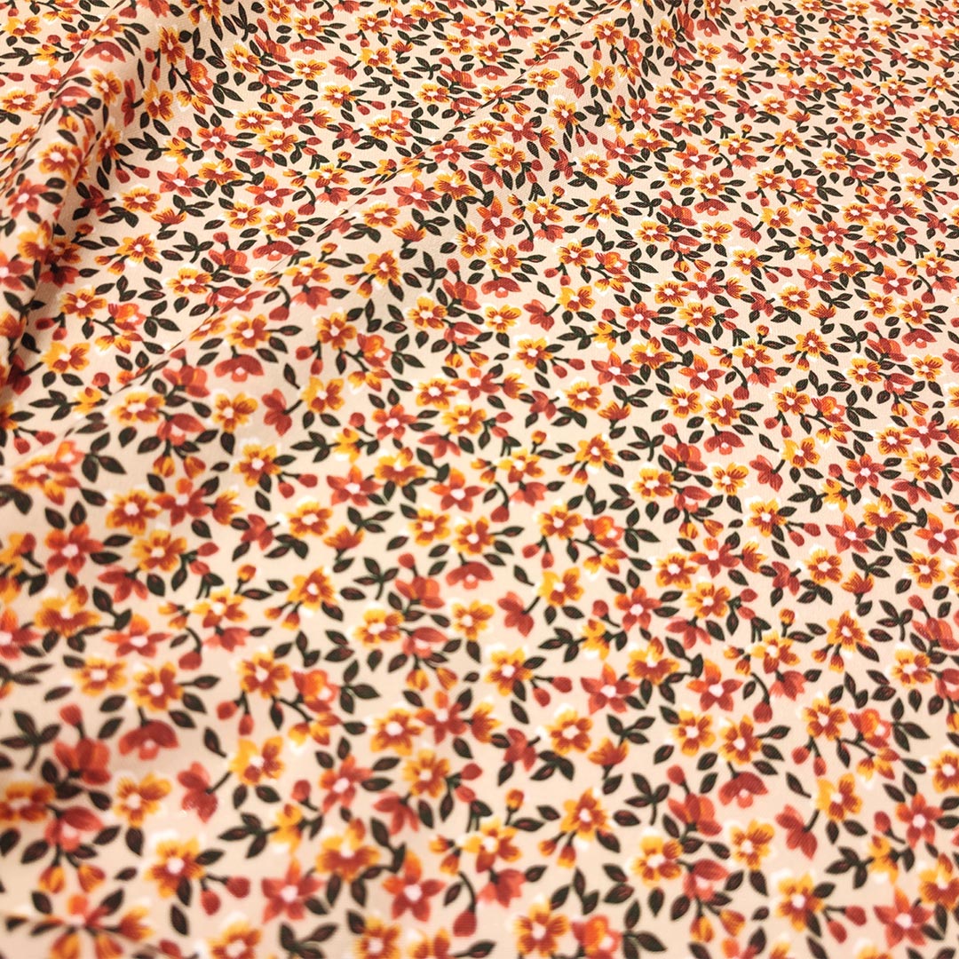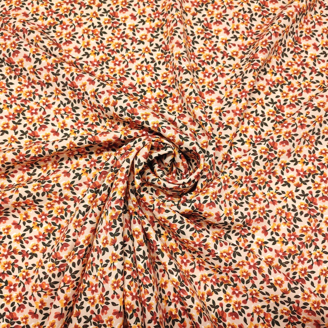 Tessuto Crepe a fantasia motivo floreale verde – beige – ruggine