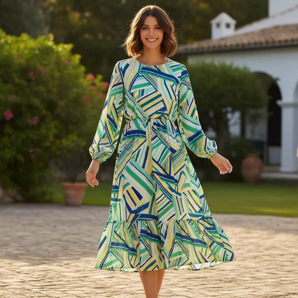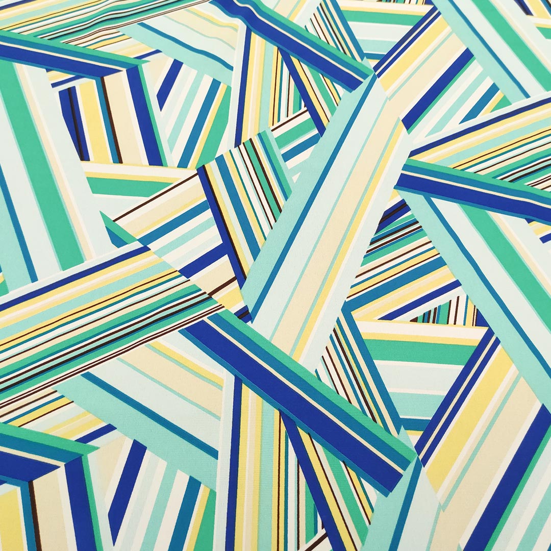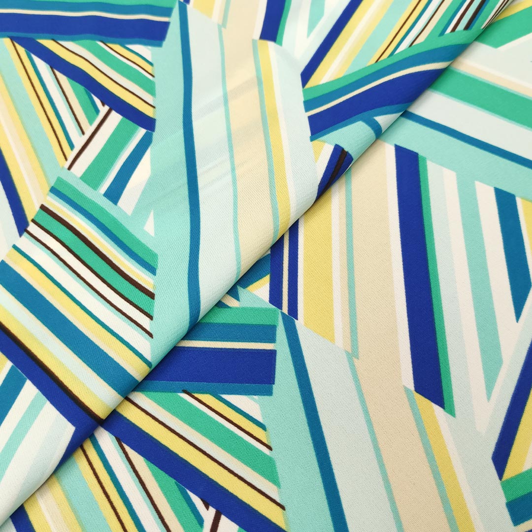 Tessuto Crepe a fantasia motivo geometrico blu royale – tiffany – smeraldo – giallo