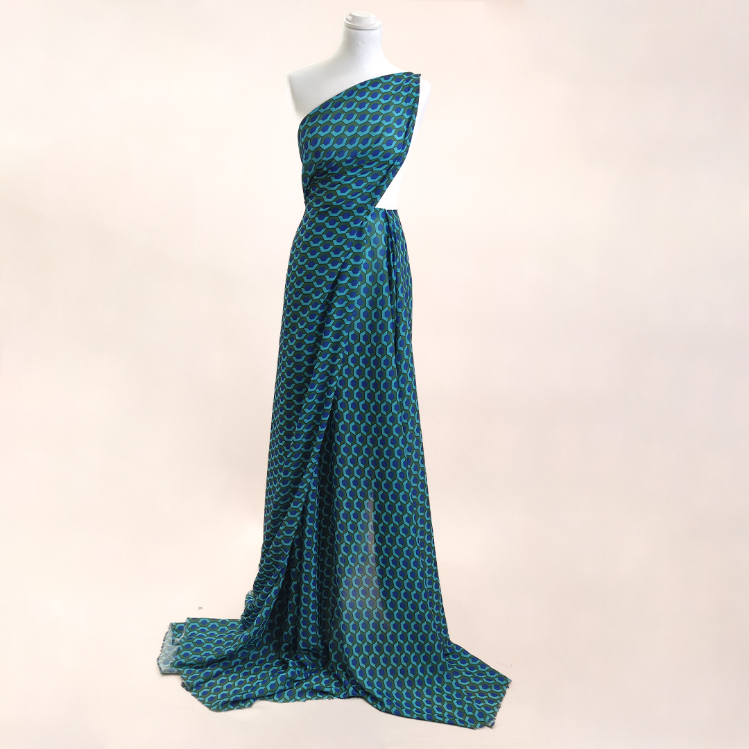 Tessuto Crepe a fantasia motivo geometrico blu – verde militare