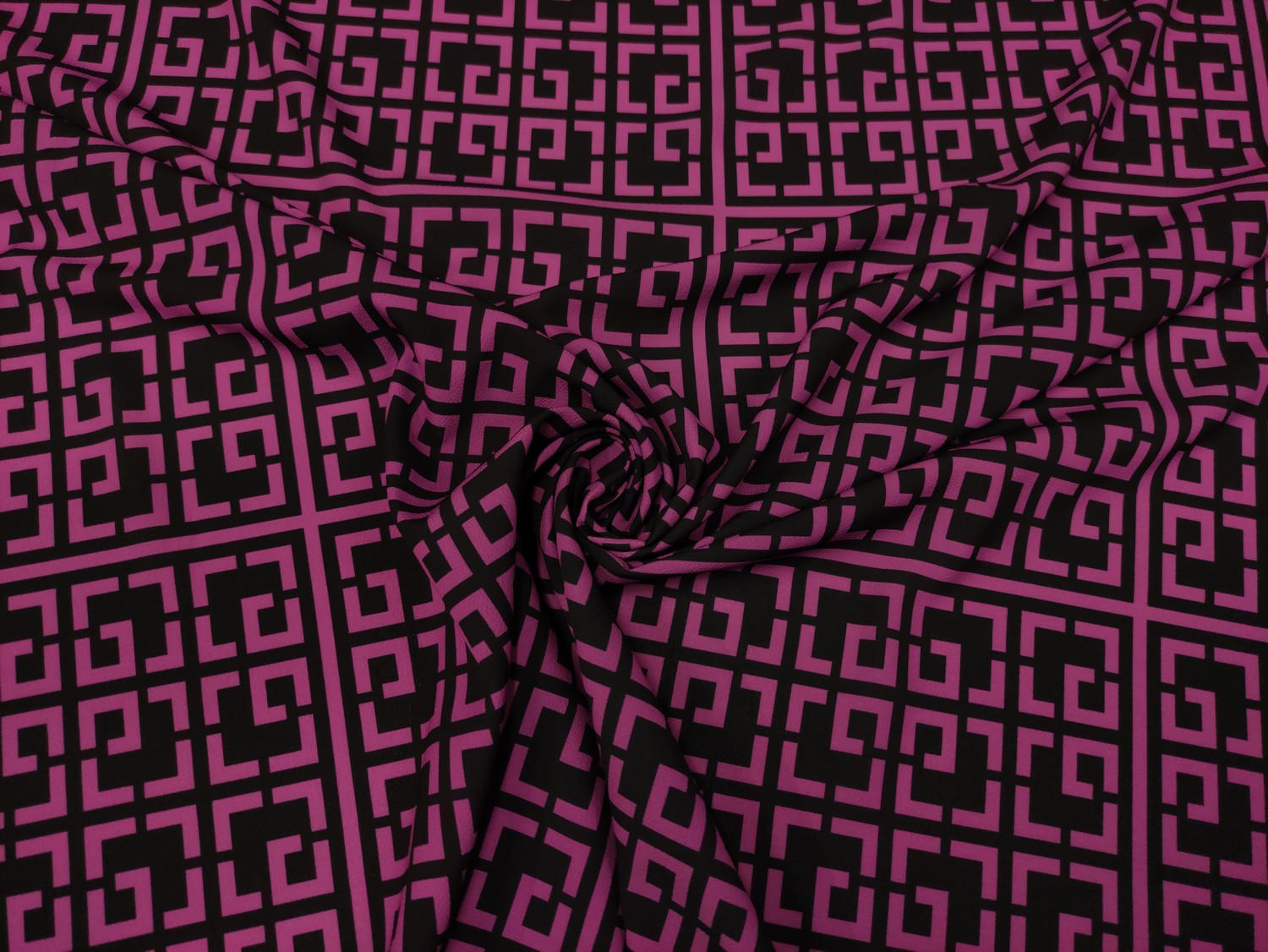 Tessuto Crepe a fantasia motivo geometrico nero – vinaccio