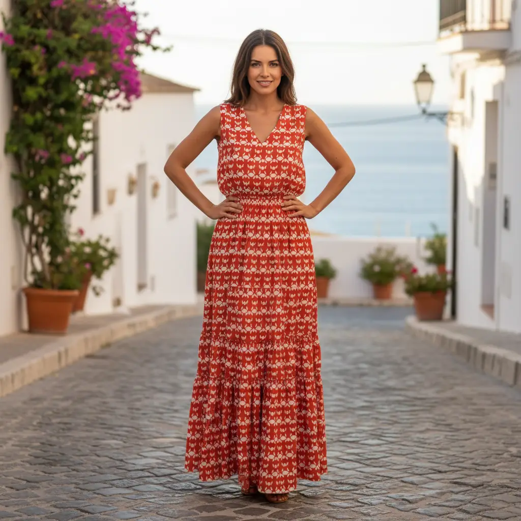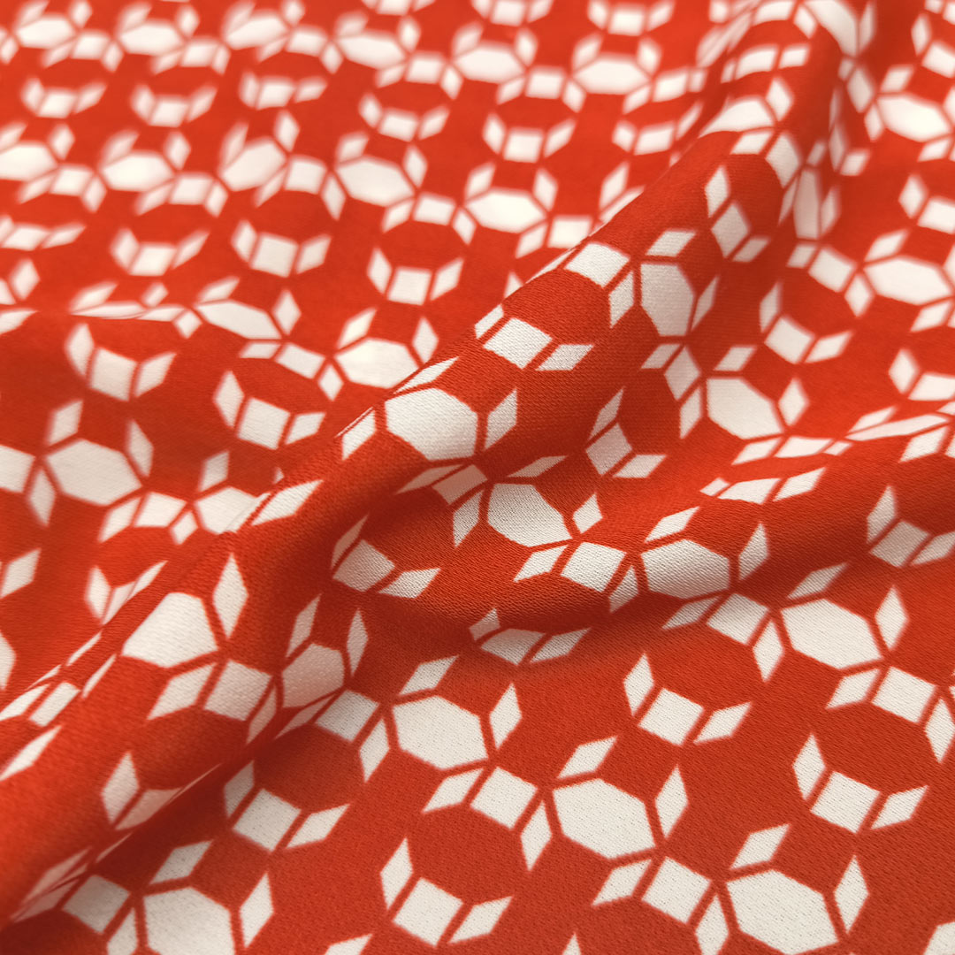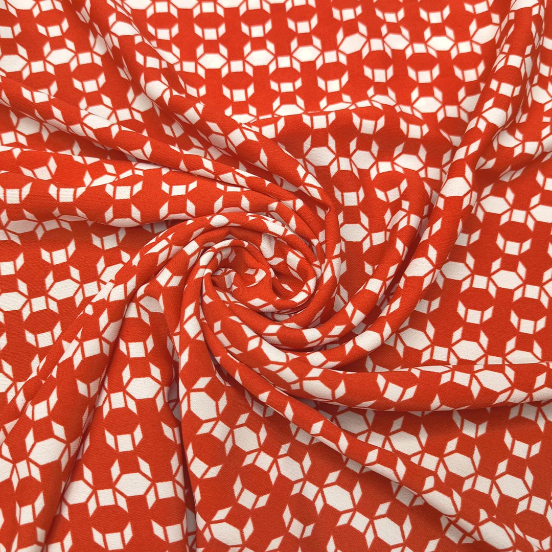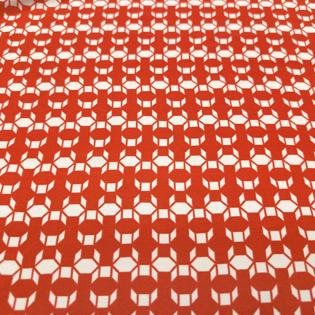 Tessuto Crepe a fantasia motivo geometrico rosso – bianco