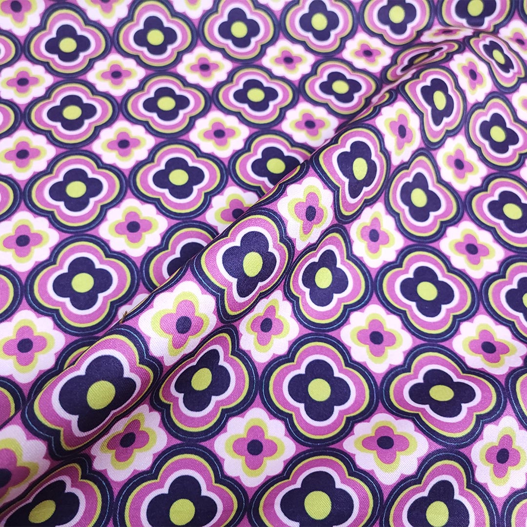 Tessuto Crepe a fantasia motivo geometrico viola – glicine – lime