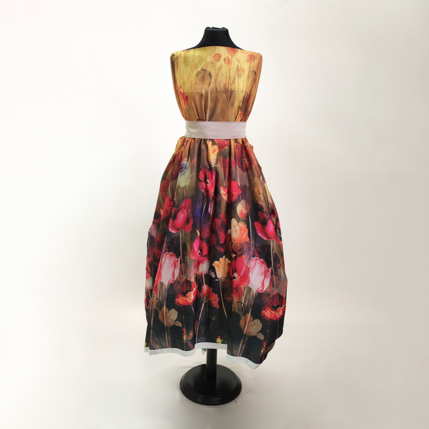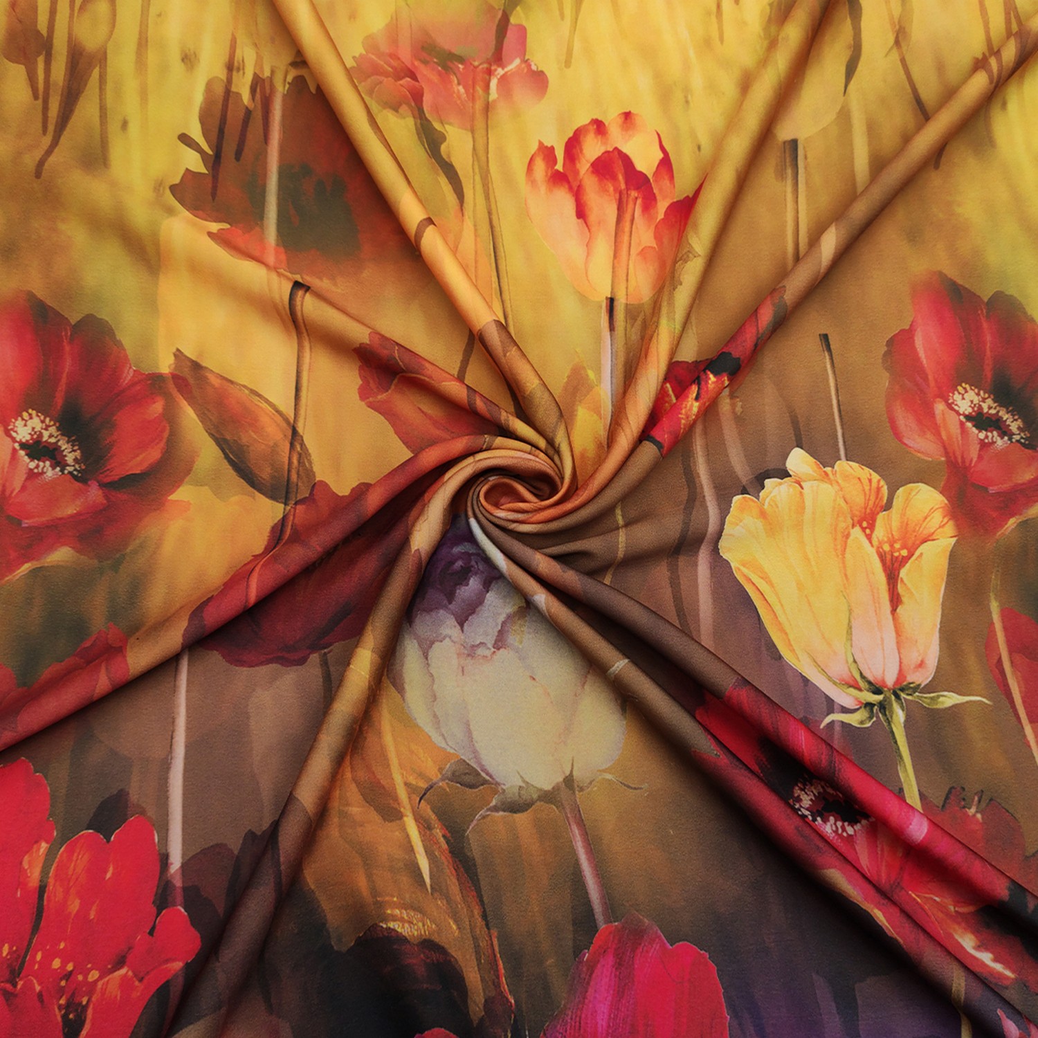 Tessuto Crepe a fantasia motivo giallo – arancione