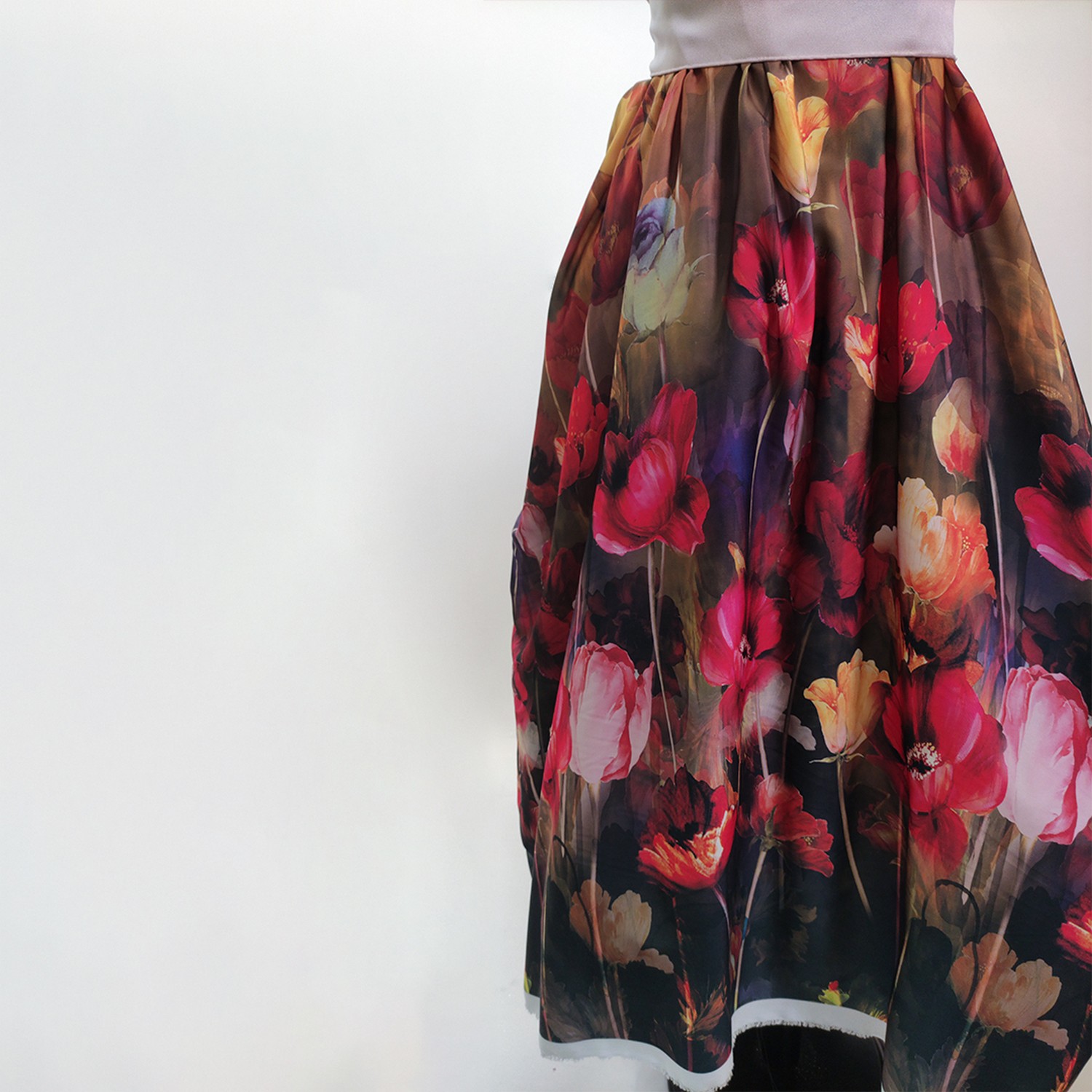 Tessuto Crepe a fantasia dalla mano rugosa, leggera e morbida, leggermente elasticizzato. Ideale per realizzare capi freschi e comodi come: abiti, camicie gonne e bluse. Selezione Iaia Collection
