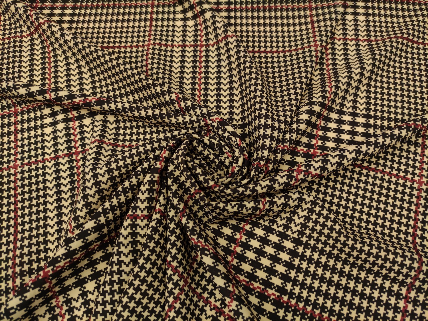 Tessuto Crepe a fantasia motivo piede de poule beige – nero – bordeaux