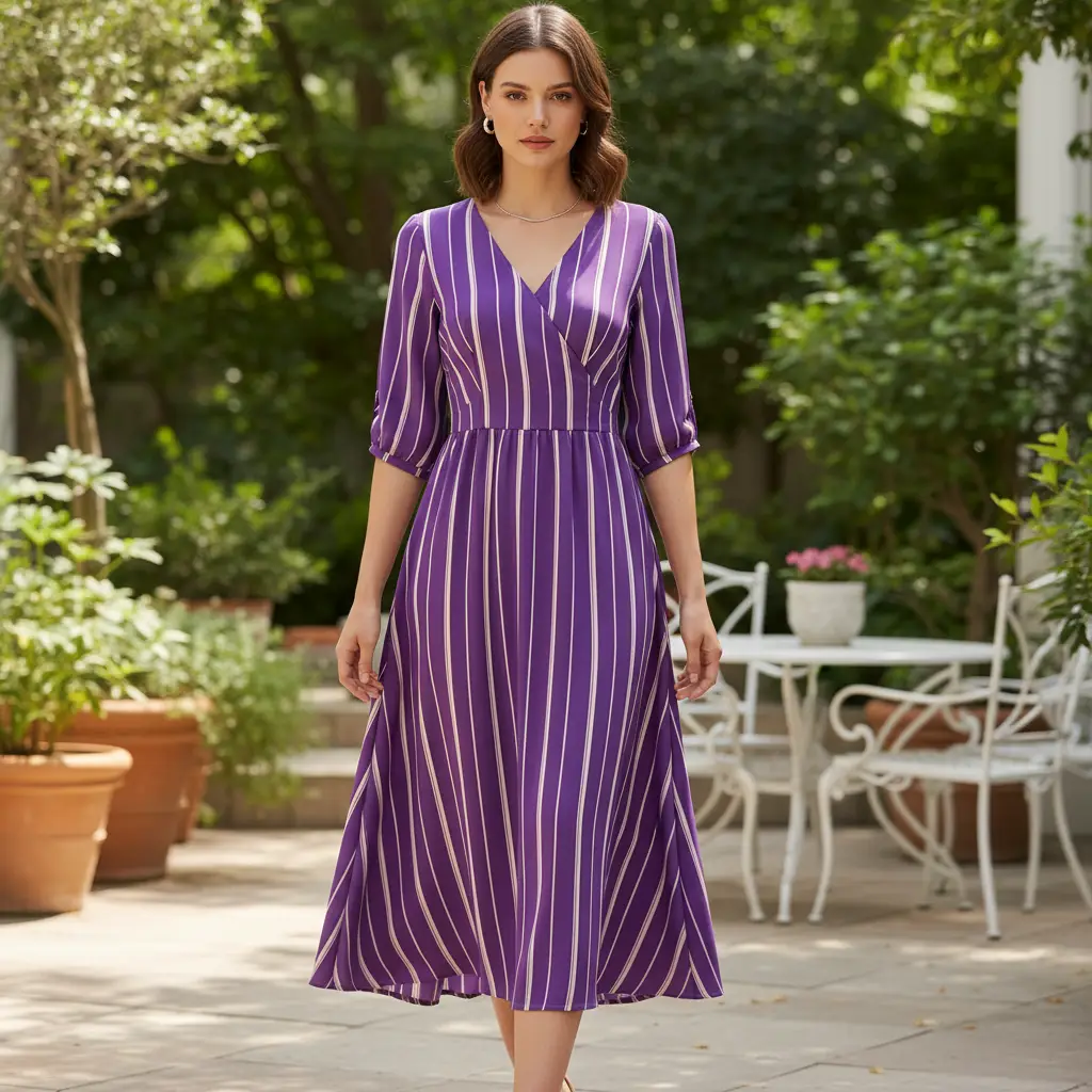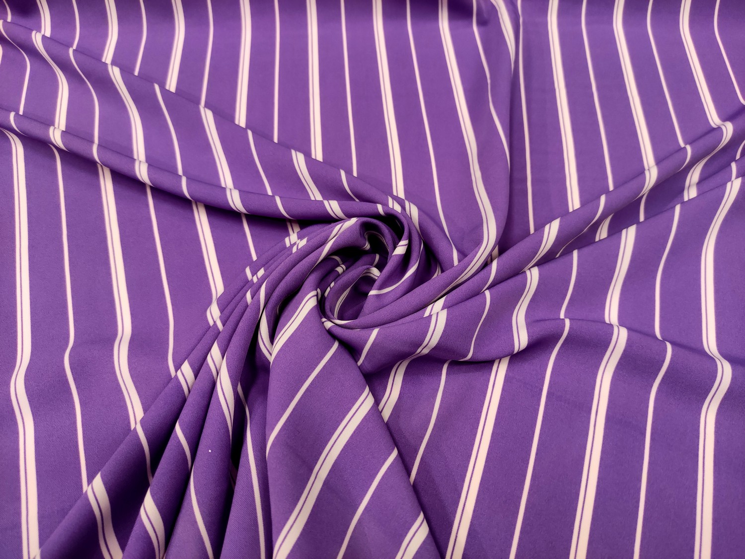 Tessuto Crepe a fantasia motivo rigato viola – bianco