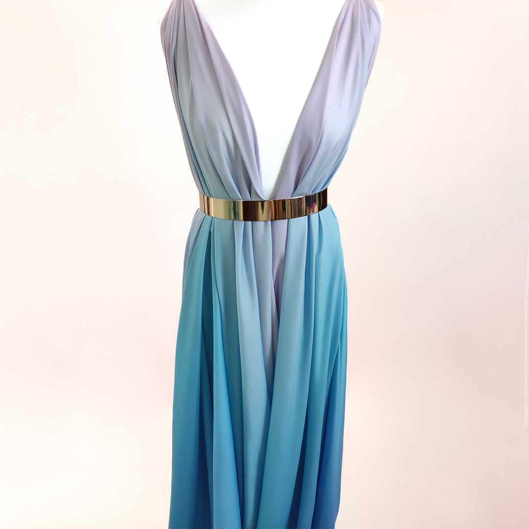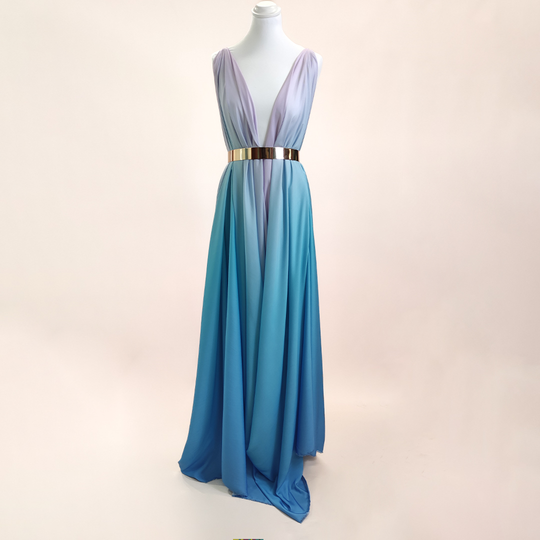 Tessuto Crepe a fantasia motivo sfumato lilla – azzurro