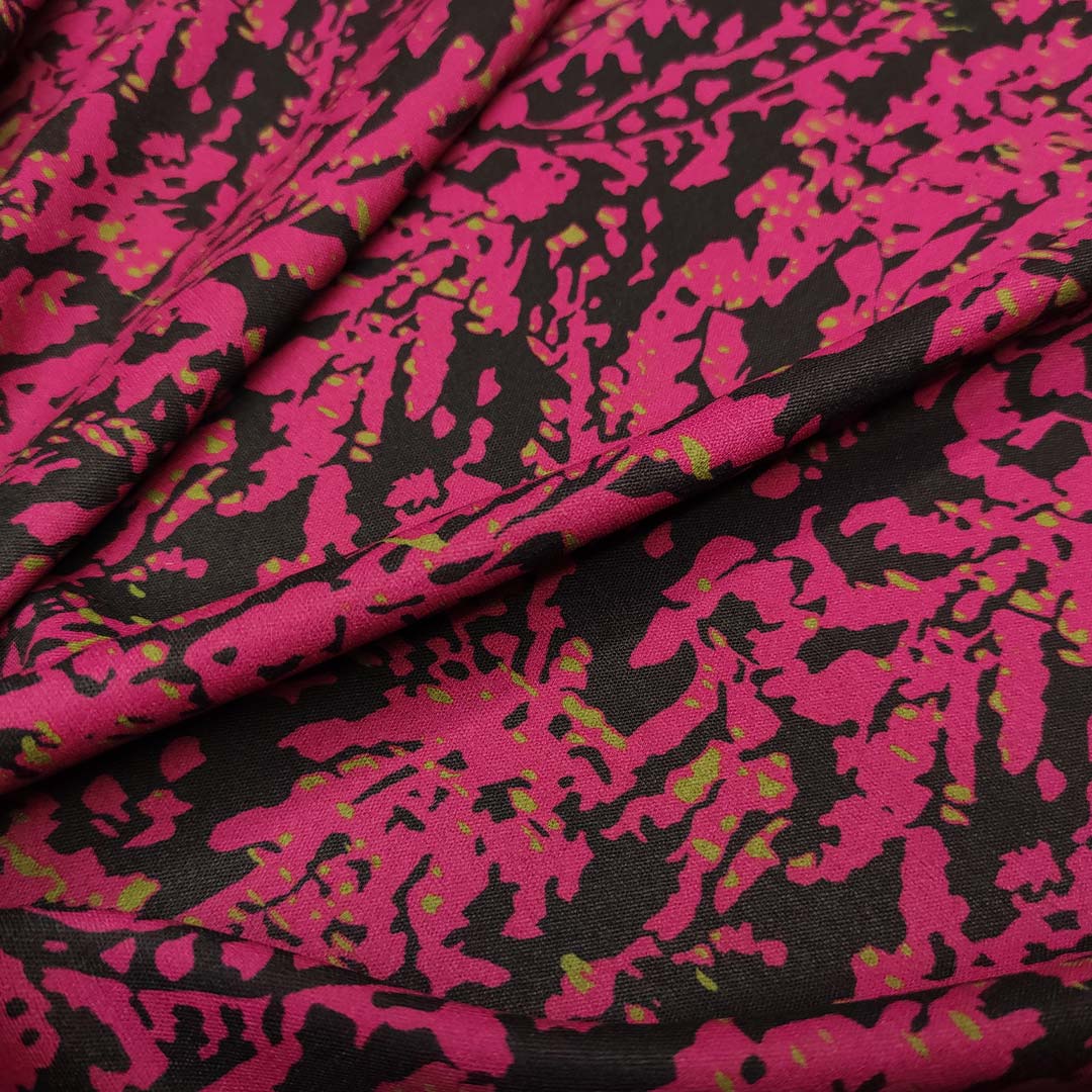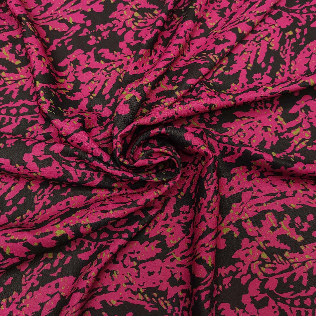 Tessuto Crepe elasticizzato a fantasia motivo astratto fucsia – nero