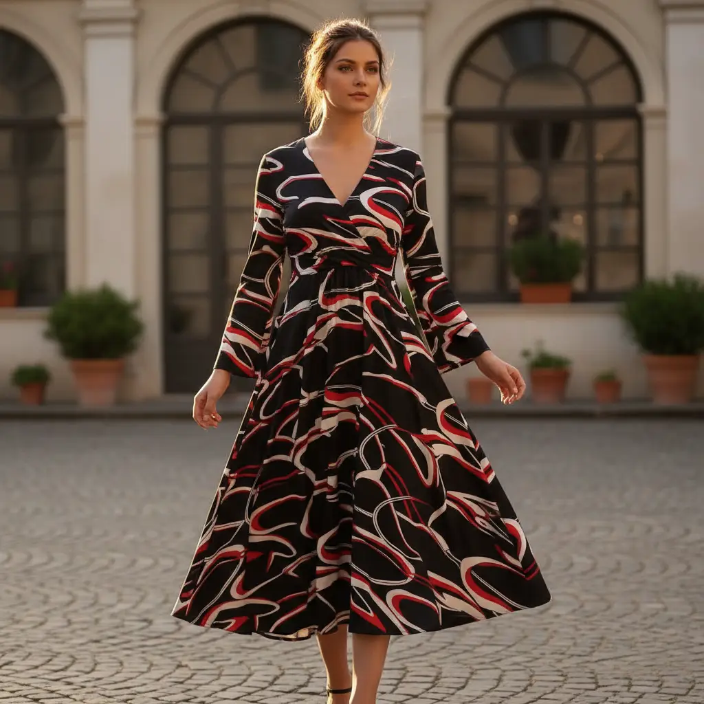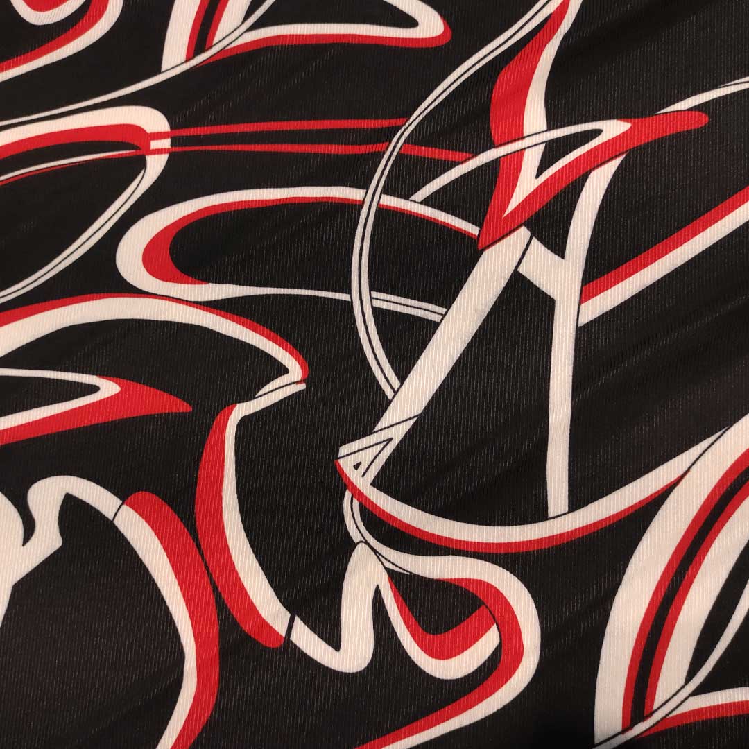 Tessuto Crepe elasticizzato a fantasia motivo astratto nero – rosso – bianco