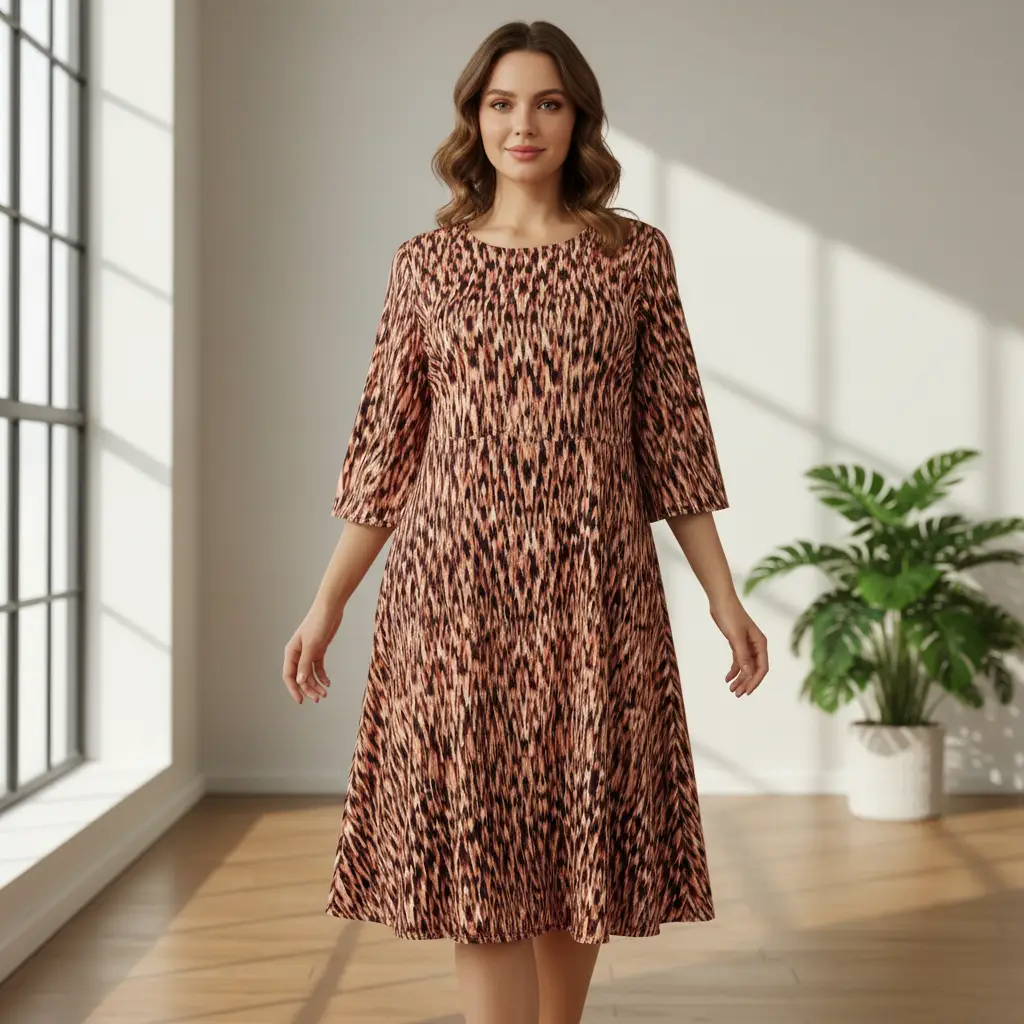 Tessuto Crepe a fantasia dalla mano rugosa, leggera e morbida, leggermente elasticizzato. Ideale per realizzare capi freschi e comodi come: abiti, camicie gonne e bluse.