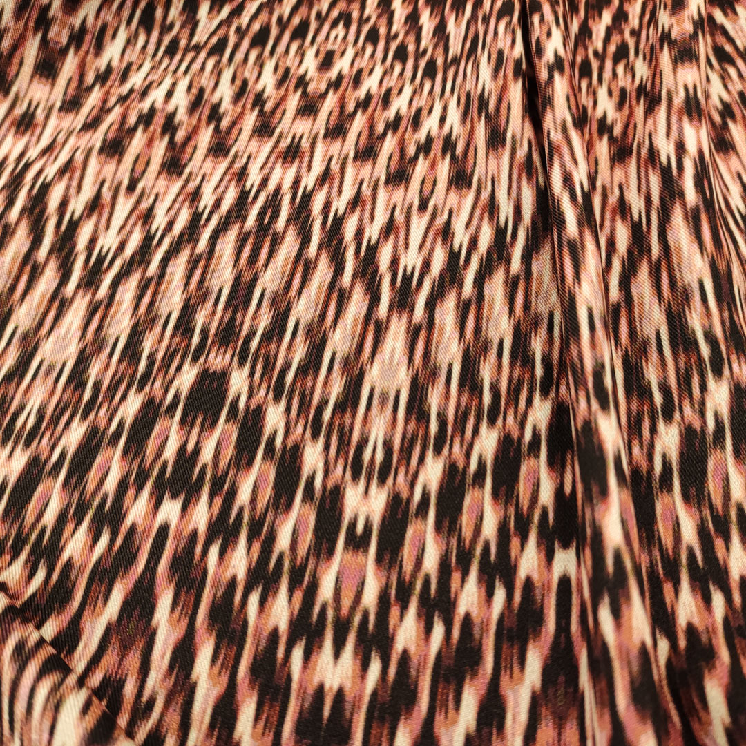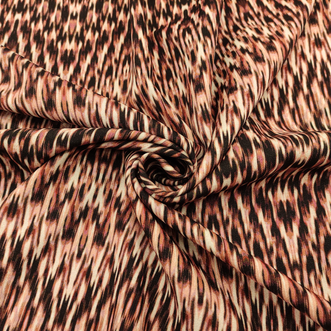 Tessuto Crepe elasticizzato a fantasia motivo astratto rosa – nero – pesco