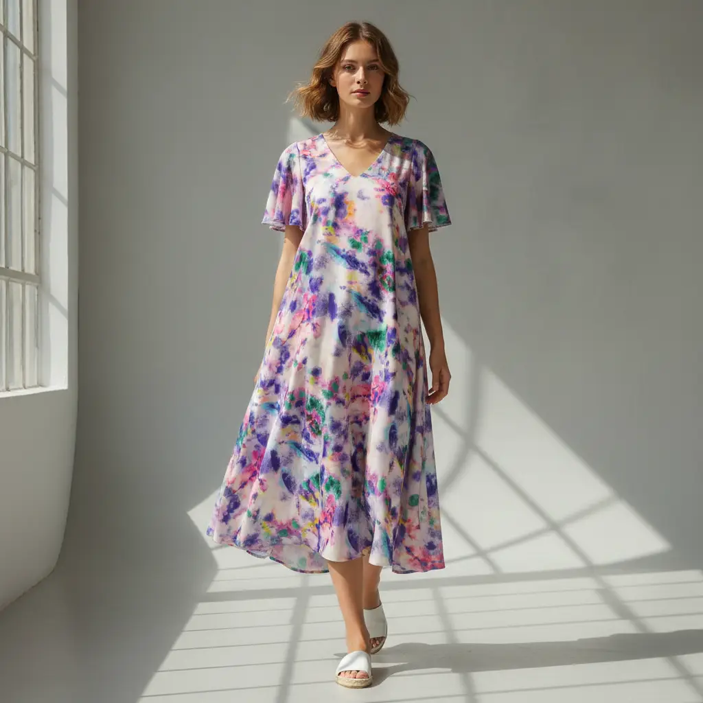 Tessuto Crepe a fantasia dalla mano rugosa, leggera e morbida, leggermente elasticizzato. Ideale per realizzare capi freschi e comodi come: abiti, camicie gonne e bluse.