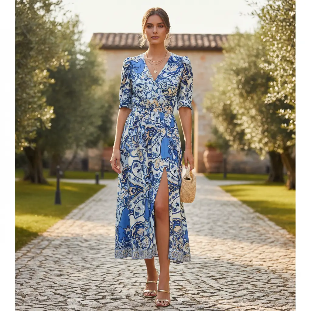Tessuto Crepe a fantasia dalla mano rugosa, leggera e morbida, leggermente elasticizzato. Ideale per realizzare capi freschi e comodi come: abiti, camicie gonne e bluse.