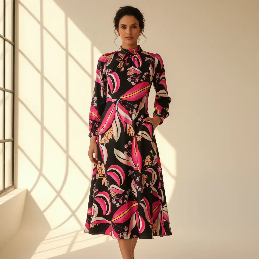 Tessuto Crepe a fantasia dalla mano rugosa, leggera e morbida, leggermente elasticizzato. Ideale per realizzare capi freschi e comodi come: abiti, camicie gonne e bluse.