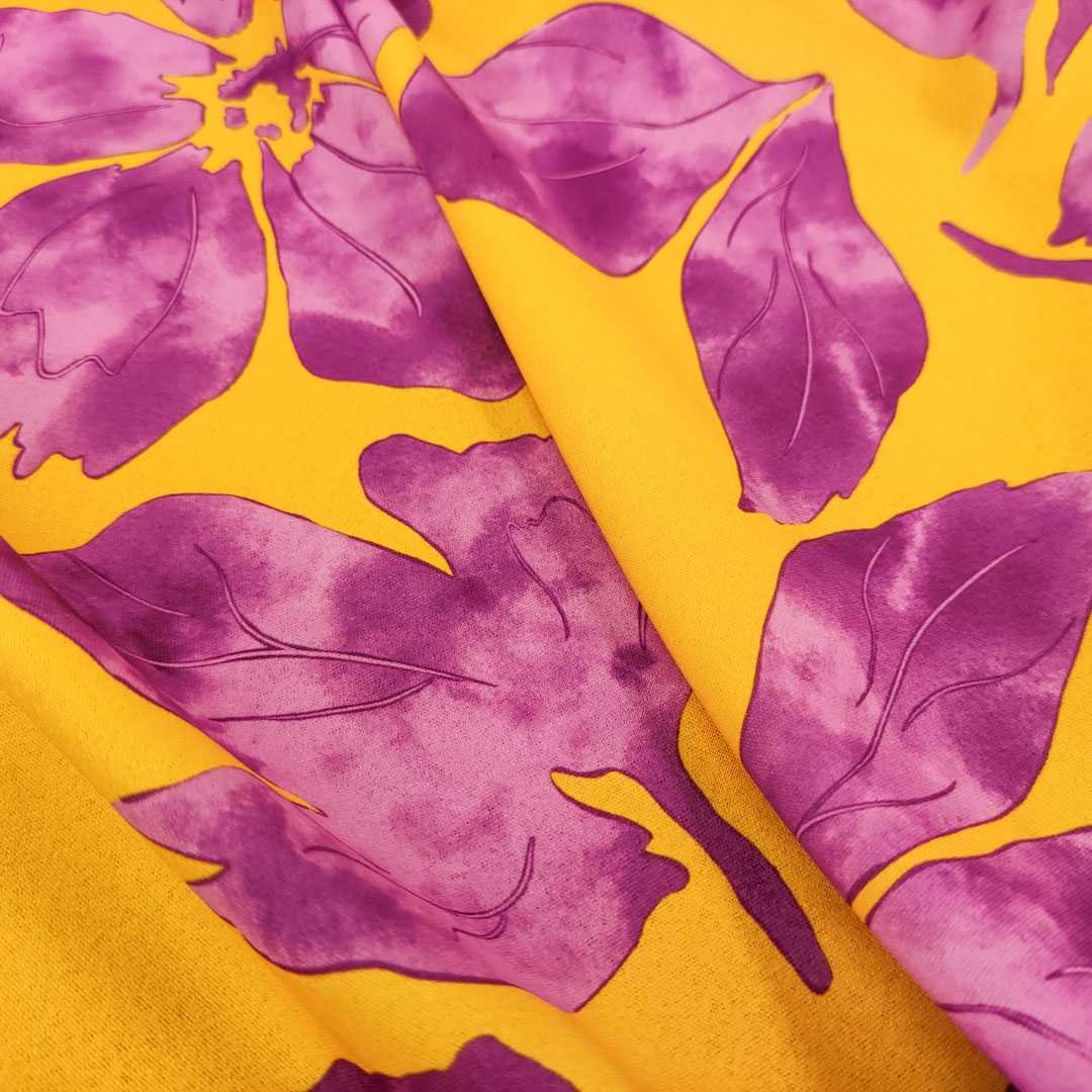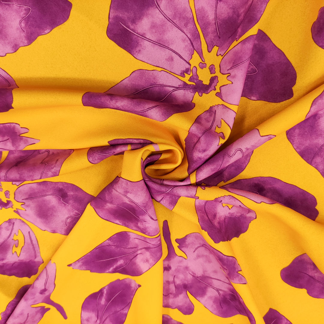 Tessuto Crepe elasticizzato a fantasia motivo floreale giallo – viola