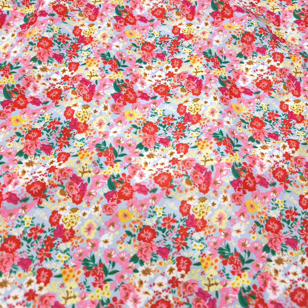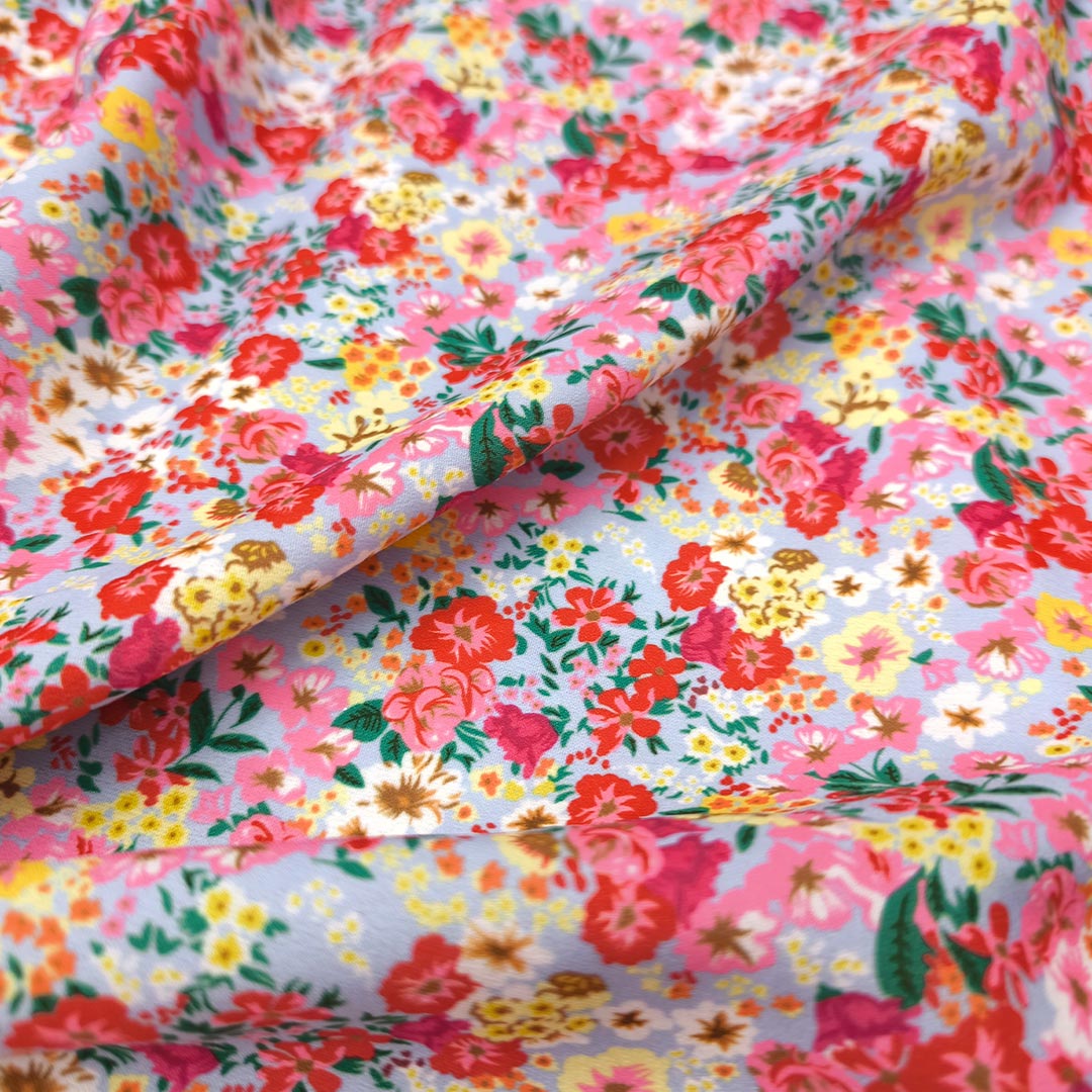 Tessuto Crepe elasticizzato a fantasia motivo floreale rosso – giallo – verde