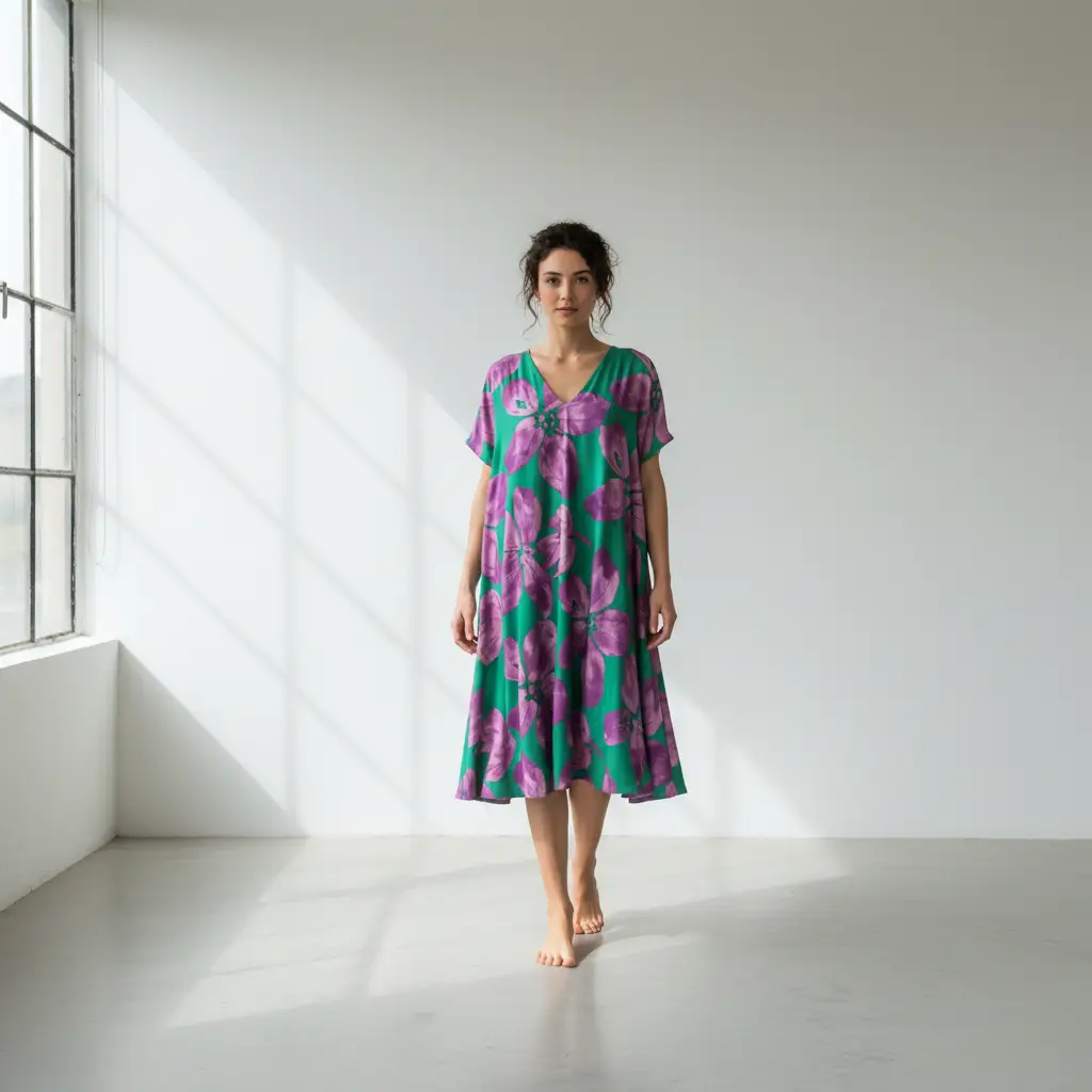 Tessuto Crepe a fantasia dalla mano rugosa, leggera e morbida, leggermente elasticizzato. Ideale per realizzare capi freschi e comodi come: abiti, camicie gonne e bluse.