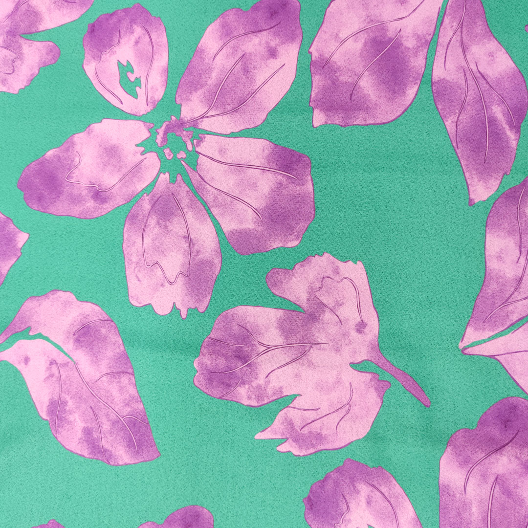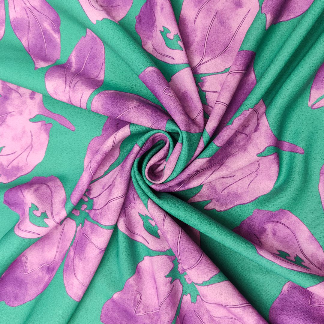 Tessuto Crepe elasticizzato a fantasia motivo floreale smeraldo – orchidea